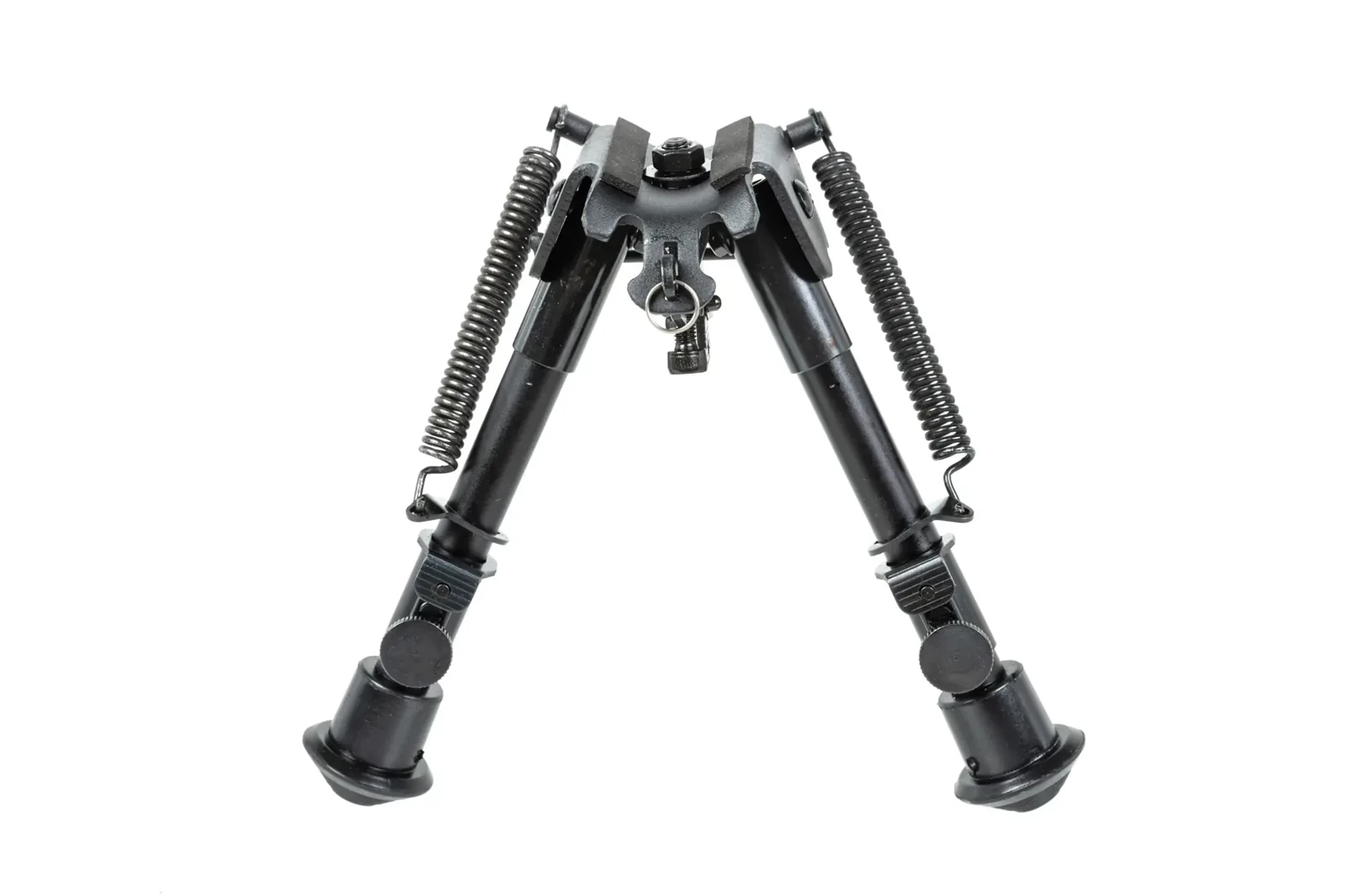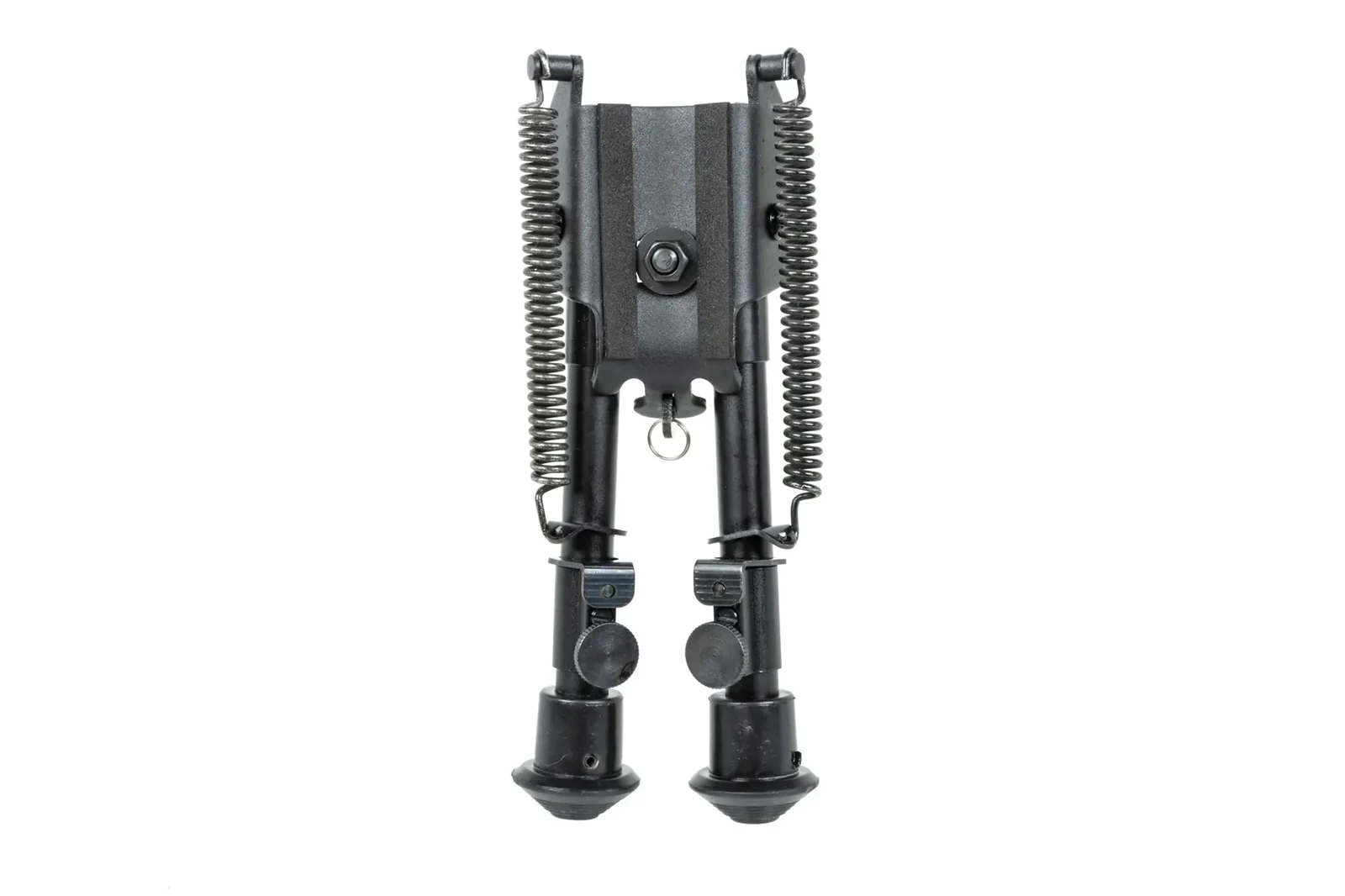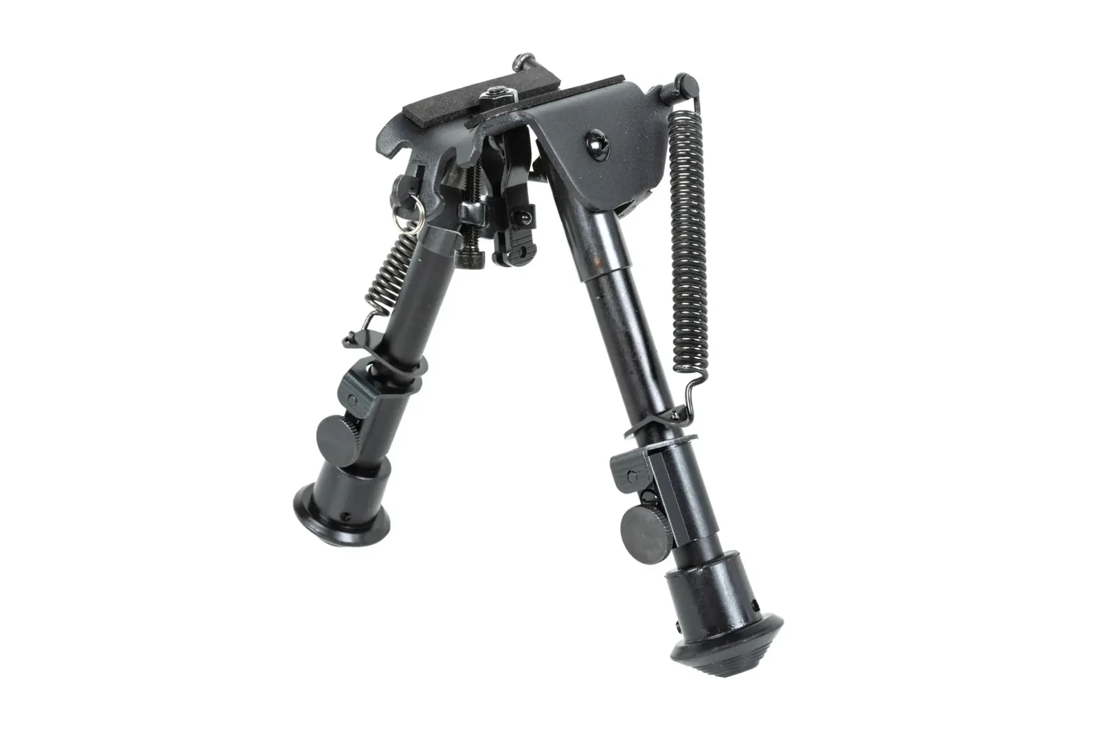 Składany dwójnóg od producenta Snow Wolf. Długość minimalna nóżek wynosi 15 cm, maksymalna 23 cm. Nóżki zakończone są gumowymi stopkami, które ułatwią obsługę karabinu na nierównym terenie. Montaż na bączek lub przy pomocy adaptera, który pozwoli zamontować całość na szynę RIS.