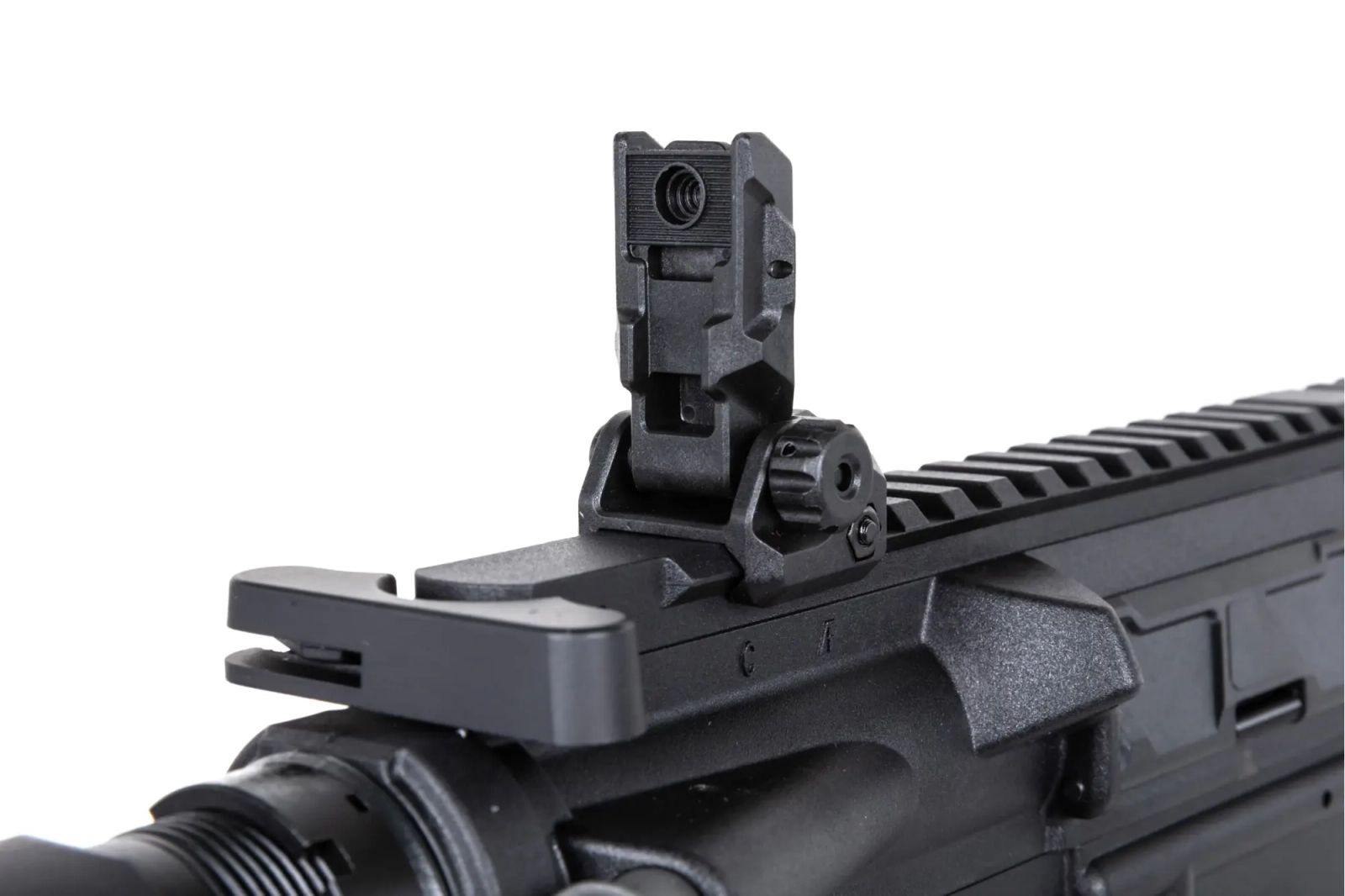 Jednocześnie z aluminium wykonano urządzenie wylotowe, manipulatory (bolt-catch - działający, selektor, zatrzask magazynka), dźwignie przeładowania. Z polimeru uświadczymy korpus z łożem M-LOK o długości 12.2 cala. Na łożu znajdziemy grzbietową szynę RIS, która umożliwi mocowanie np. lunety czy kolimatora. Z polimeru wykonano również: ergonomiczny chwyt pistoletowy, który posiada chropowatą powierzchnie, magazynek, ergonomiczną, regulowaną kolbę, w której pomieścimy akumulator oraz składane przyrządy celownicze.