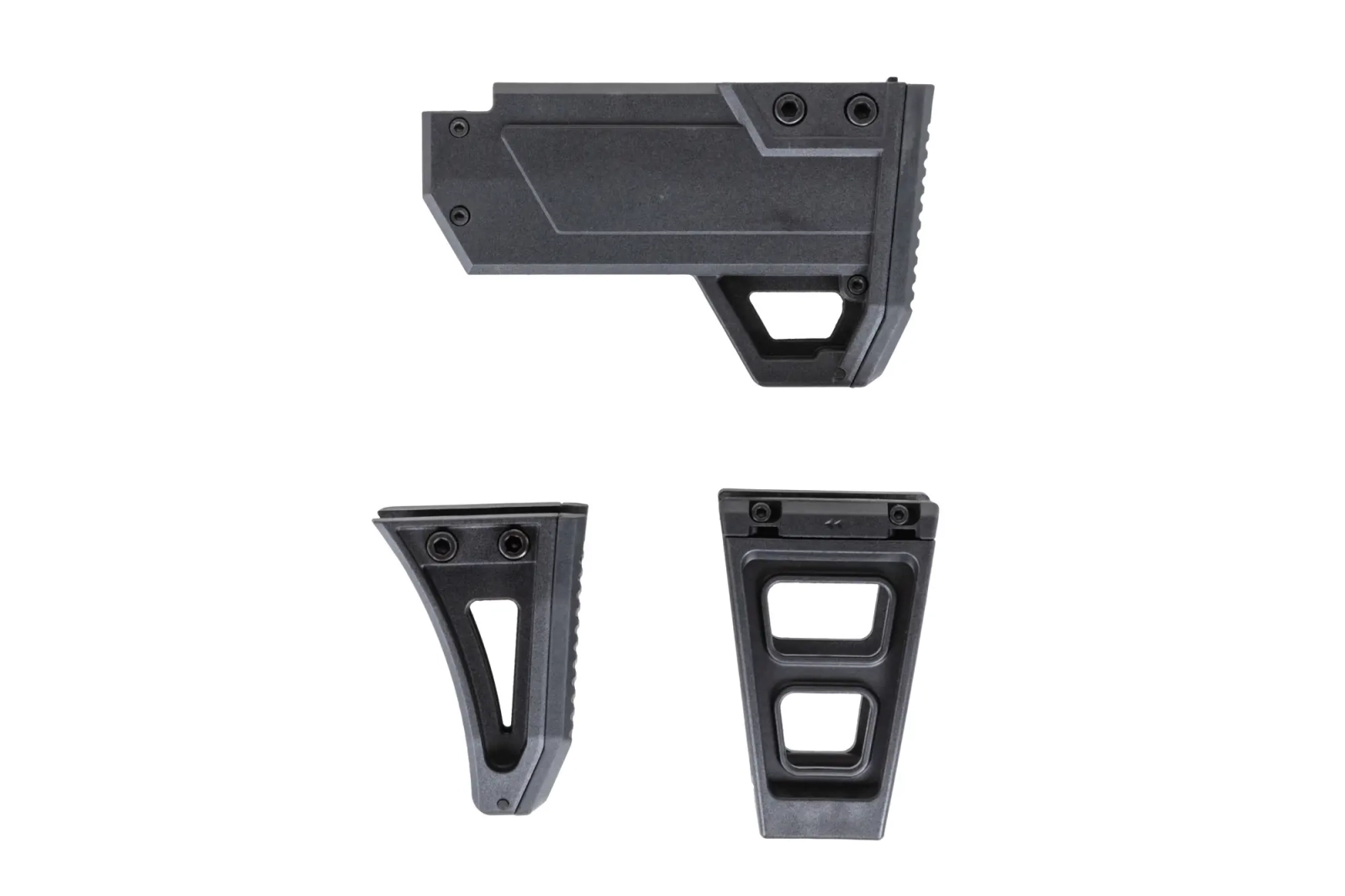 W zestawie dołączono urządzenie do mechanicznej regulacji pre-cockingu pod postacią atrapy naboju oraz zestaw wymiennych stopek kolby, które pozwolą dostosować kolbę do potrzeb użytkownika.