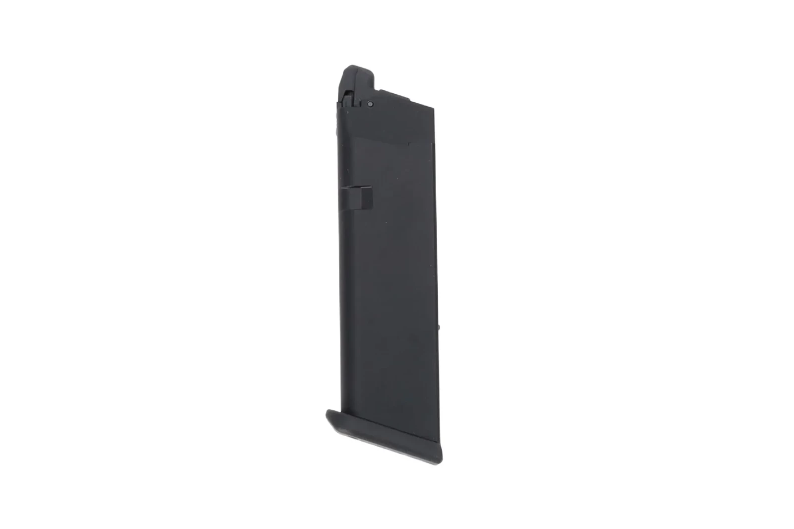 Magazynek wykonany z metalu (korpus) i tworzywa sztucznego (stopka). Pomieści 25 kulek, jest kompatybilny z systemem WE. Zasilany jest nabojem CO2.
