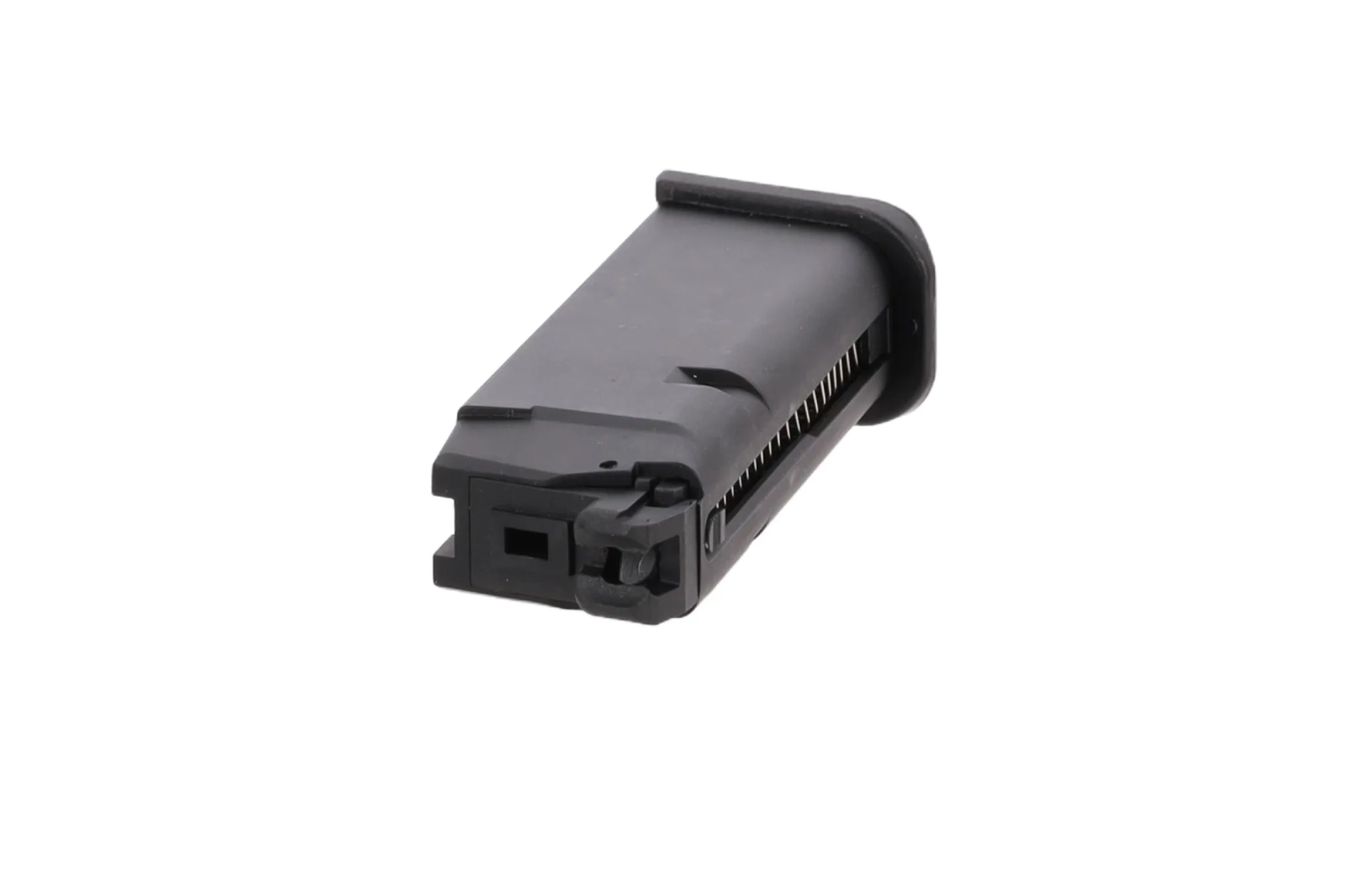 Magazynek wykonany z metalu (korpus) i tworzywa sztucznego (stopka). Pomieści 25 kulek, jest kompatybilny z systemem WE. Zasilany jest green gasem.