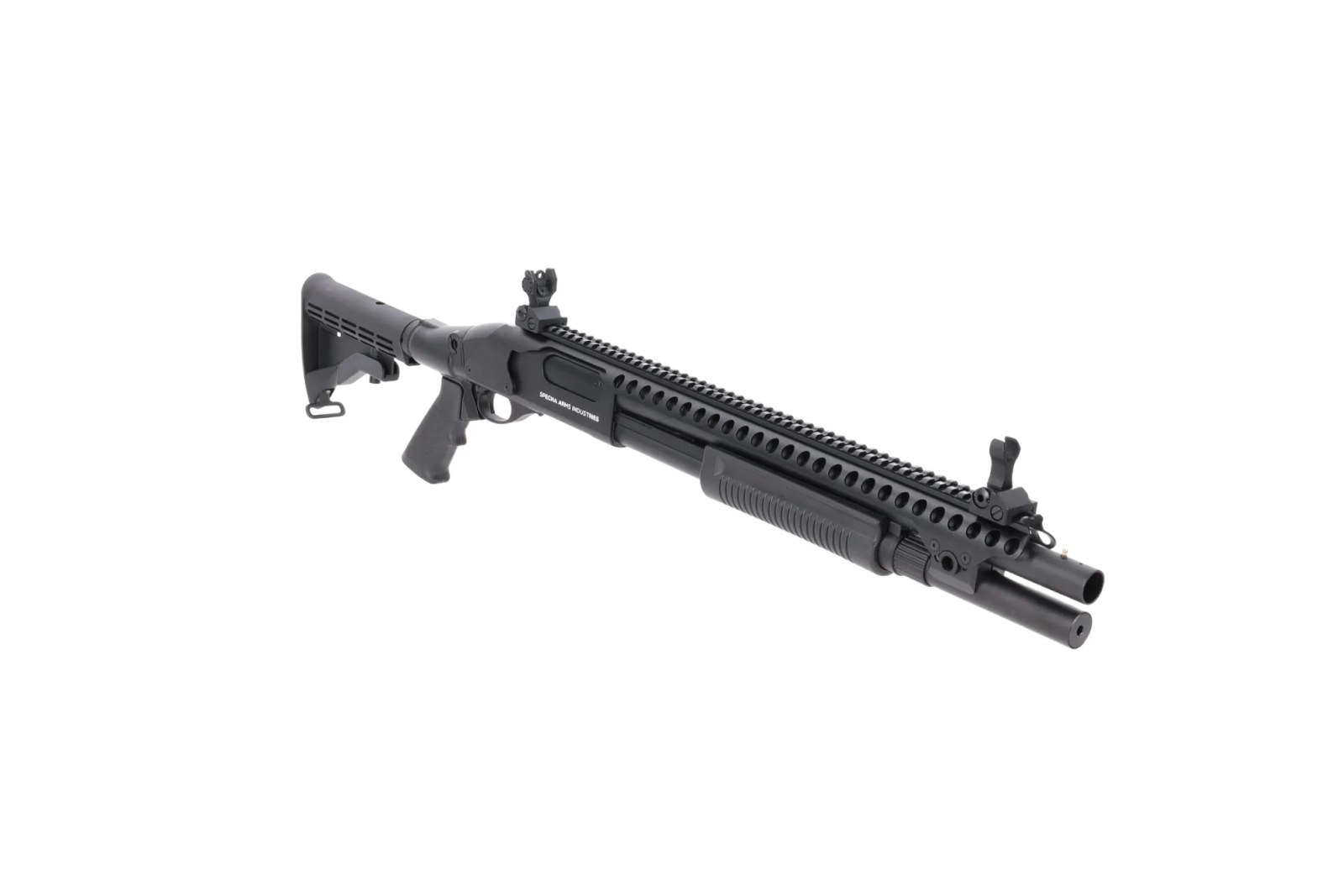 Strzelba ASG Specna Arms SA-VGS7 Vapor™ to wysokiej jakości replika typu pump-action zasilana green gasem, stworzona z myślą o dynamicznych rozgrywkach airsoftowych. Model Vapor™ łączy w sobie solidną konstrukcję, nowoczesny design oraz szereg funkcjonalnych rozwiązań, które zapewniają przewagę na polu walki. Korpus repliki został w większości wykonany z metalu, co przekłada się na jej trwałość i realistyczne odczucia podczas użytkowania. Polimerowe elementy ograniczono do regulowanej, 6-pozycyjnej kolby taktycznej, czółenka oraz chwytu pistoletowego typu M4/M16 – znanego z replik karabinków szturmowych.