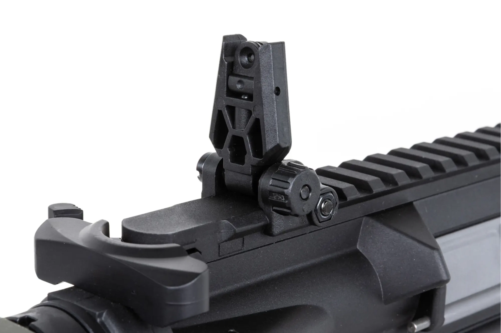 Replika wyposażona została w frontową szynę M-LOK oraz regulowaną kolbę. Na górnej szynie RIS została założony składany przeziernik, który nie koliduje z optoelektronicznymi urządzeniami celowniczymi. Dzięki rozsuwanej kolbie zakończonej stopką o antypoślizgowej fakturze, możliwe jest dostosowanie długości repliki do budowy oraz preferencji strzelca. Standardowy tłumik płomienia osadzony został na 14-milimetrowym lewoskrętnym gwincie, co umożliwia przyłączenie w jego miejsce tłumika dźwięku.