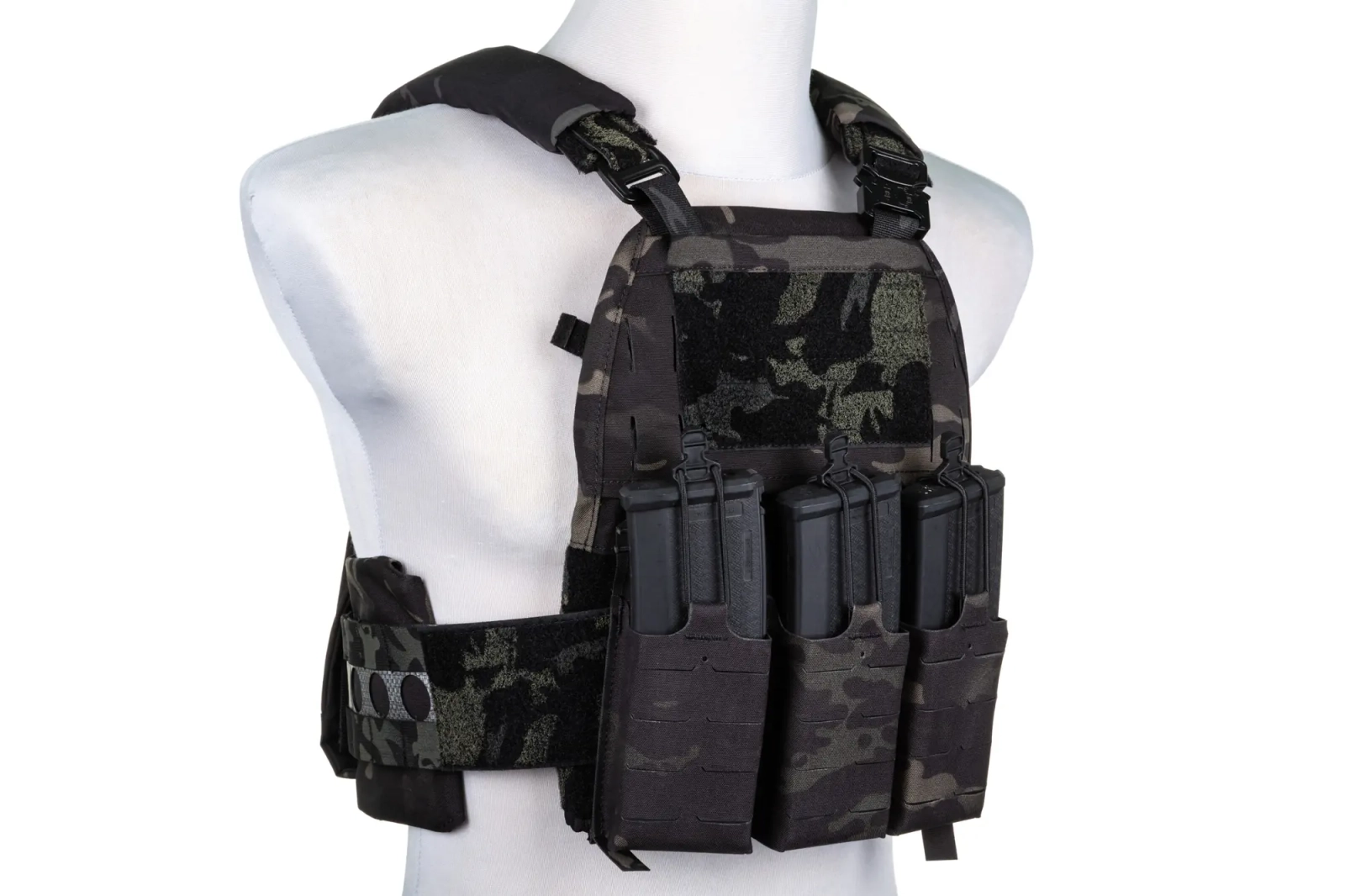 Front kamizelki posiada ładownice na 3 magazynki typu M4/M16. Ładownica montowana jest na rzep oraz G-kształtne klamry. Z przodu kamizelki znajduje się szereg mocowań MOLLE LASER CUT oraz panel-rzep, który umożliwi montaż naszywek lub identyfikatoru.