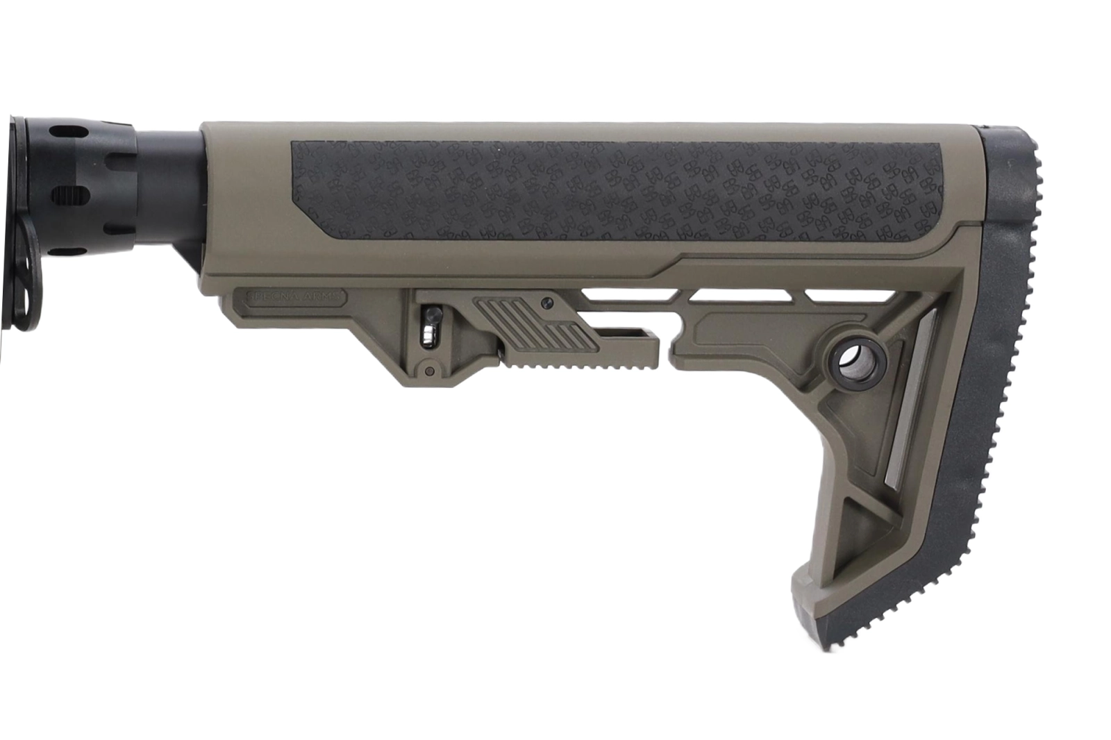 Replika posiada licencjonowane oznaczenia producenta broni palnej Rock River Arms. To amerykański producent części i akcesoriów do broni, ale przede wszystkim wysokiej jakości karabinków z rodziny AR-15. Firma założona w 1996 przez braci Larson, do spółki z Lesem Baer'em ma swoją siedzibę w Colonie w stanie Illinois. Dziś RRA dostarcza swoje karabinki na kontrakt między innymi dla agencji anty-narkotykowej DEA, FBI czy US Marshals.Kolba Light Ops Stock to minimalistyczna kolba o niskiej wadze oraz o nienagannym i modernistycznym wyglądzie. Model posiada gumowe antypoślizgowe wlepki po obu stronach baki policzkowej oraz charakterystyczną zakrzywioną gumkę stopki kolby, która wygodnie osiada na ramieniu.