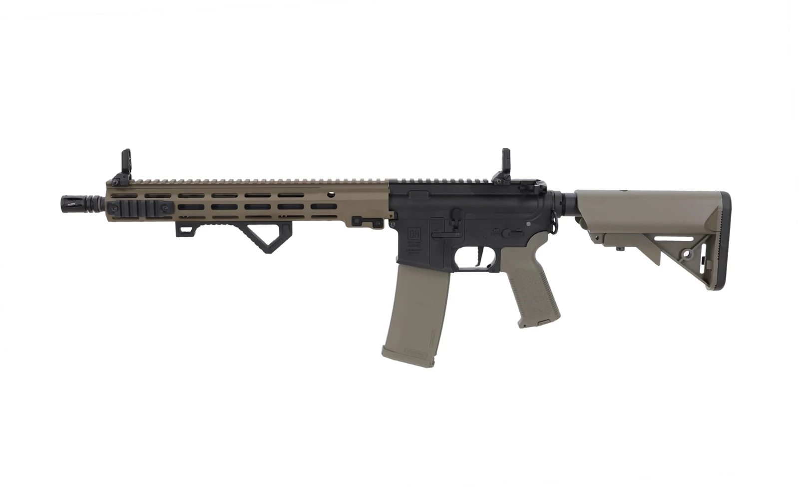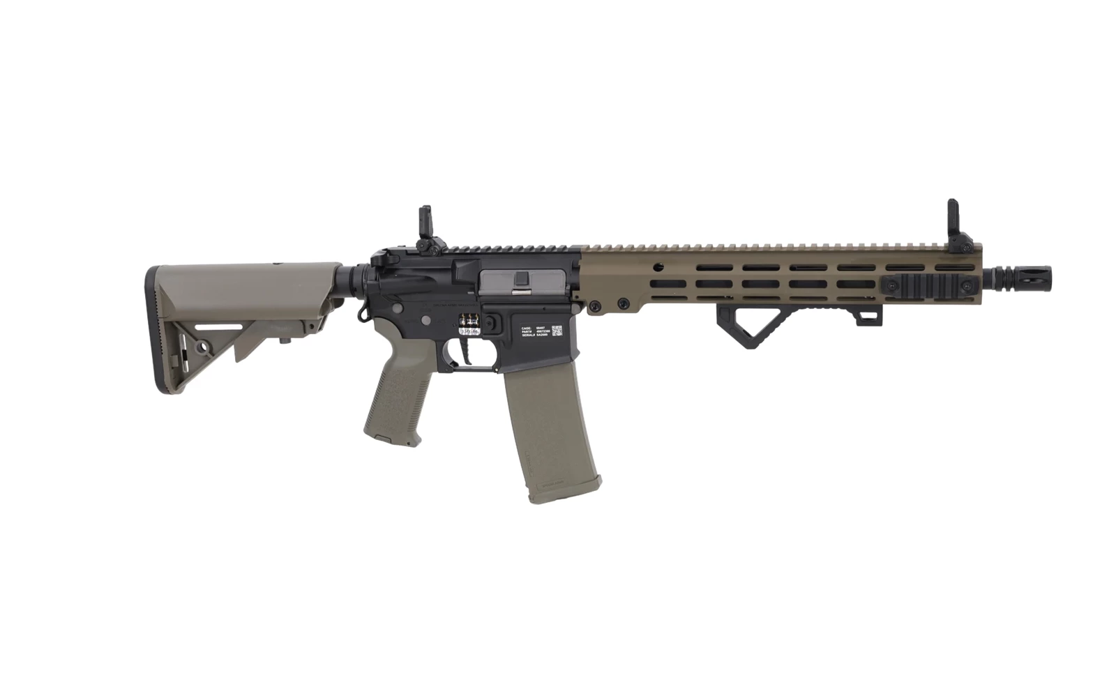 Specna Arms SA-E22 EDGE™ HAL 2 ETU Gen. 2 to wytrzymały, ergonomiczny karabinek ASG gotowy na wszelkie możliwe scenariusze. Na korpusie umieszczono oznaczenia Specna Arms oraz indywidualny numer seryjny. Warte uwagi detale to chwyt pistoletowy QD, zapewniający łatwy i szybki dostęp do silnika bez konieczności użycia narzędzi oraz obustronne ucho do montażu zawieszenia taktycznego.