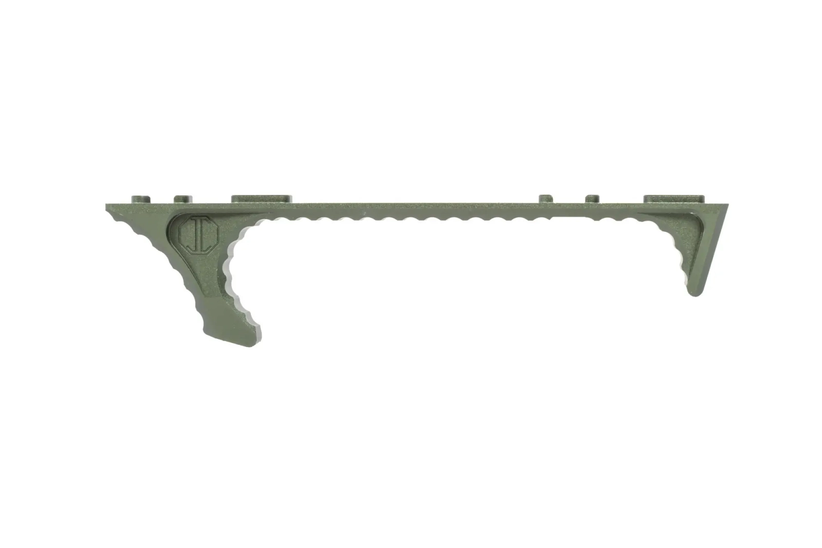 Lekki, kątowy chwyt typu hand stop wykonany z aluminium. Chwyt został pokryty antypoślizgową fakturą oraz posiada montaż kompatybilny ze standardem M-LOK.