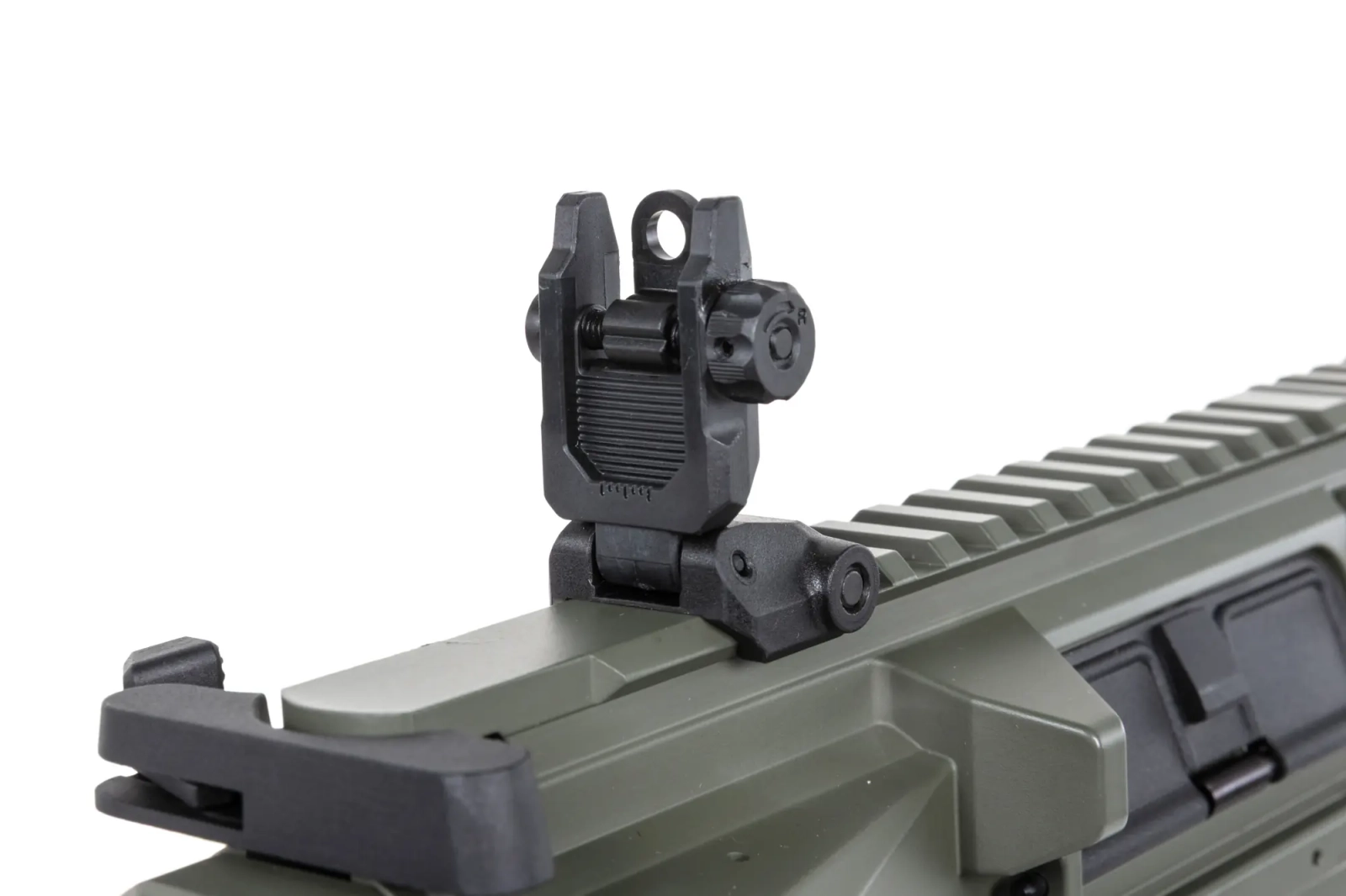 Na dodatkową uwagę zasługuje ergonomiczny chwyt pistoletowy oraz magazynek typu mid-cap, który posiada okno inspekcyjne i jaskrawy follower. Świetnie się prezentuje również urządzenie wylotowe, wykonane ze stali, które ma ciekawy, agresywny kształt.