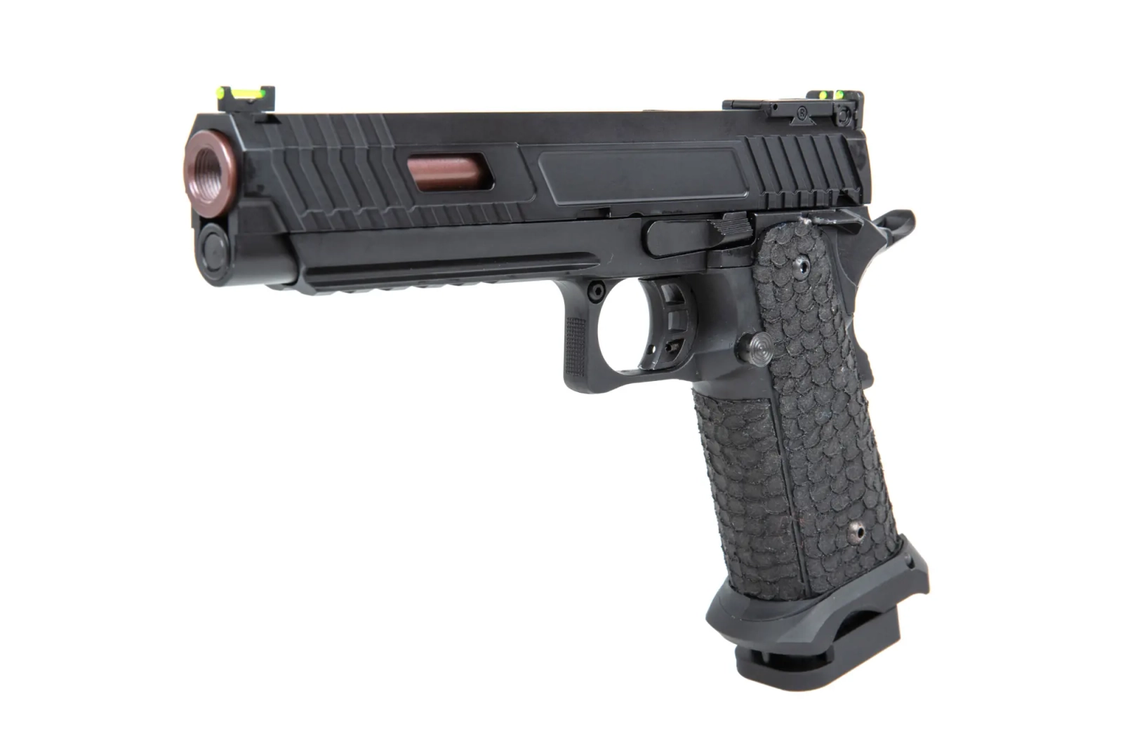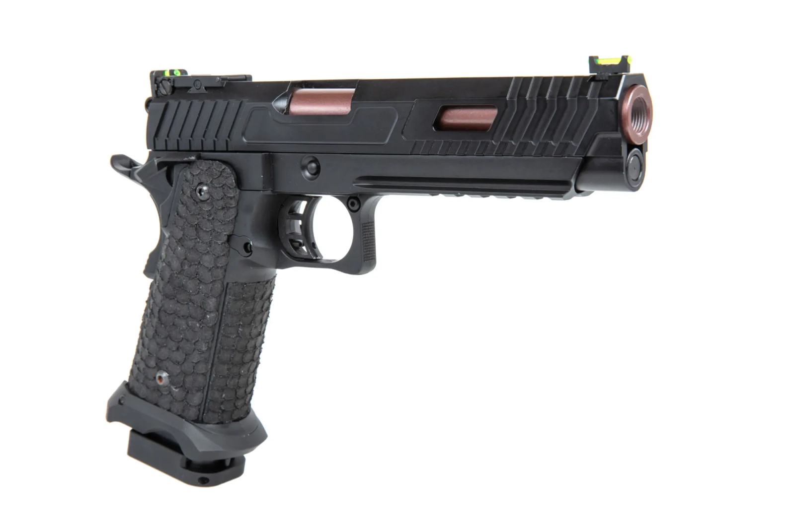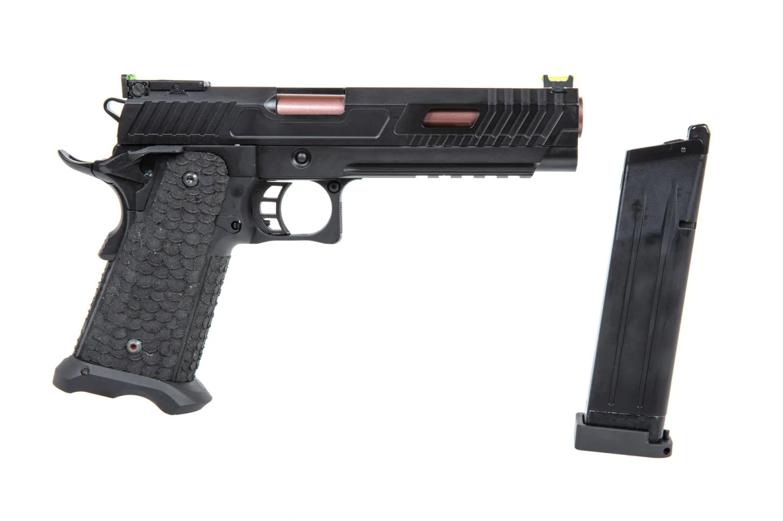 Pistolet posiada obustronny, podwójny bezpiecznik uniemożliwiający przypadkowe oddanie strzału. Dzięki zastosowaniu realistycznego systemu blow-back zamek repliki cofa się przy każdym strzale, podobnie jak podczas prowadzenia ognia z palnego pistoletu. Po opróżnieniu magazynka zamek pozostaje w tylnej pozycji.