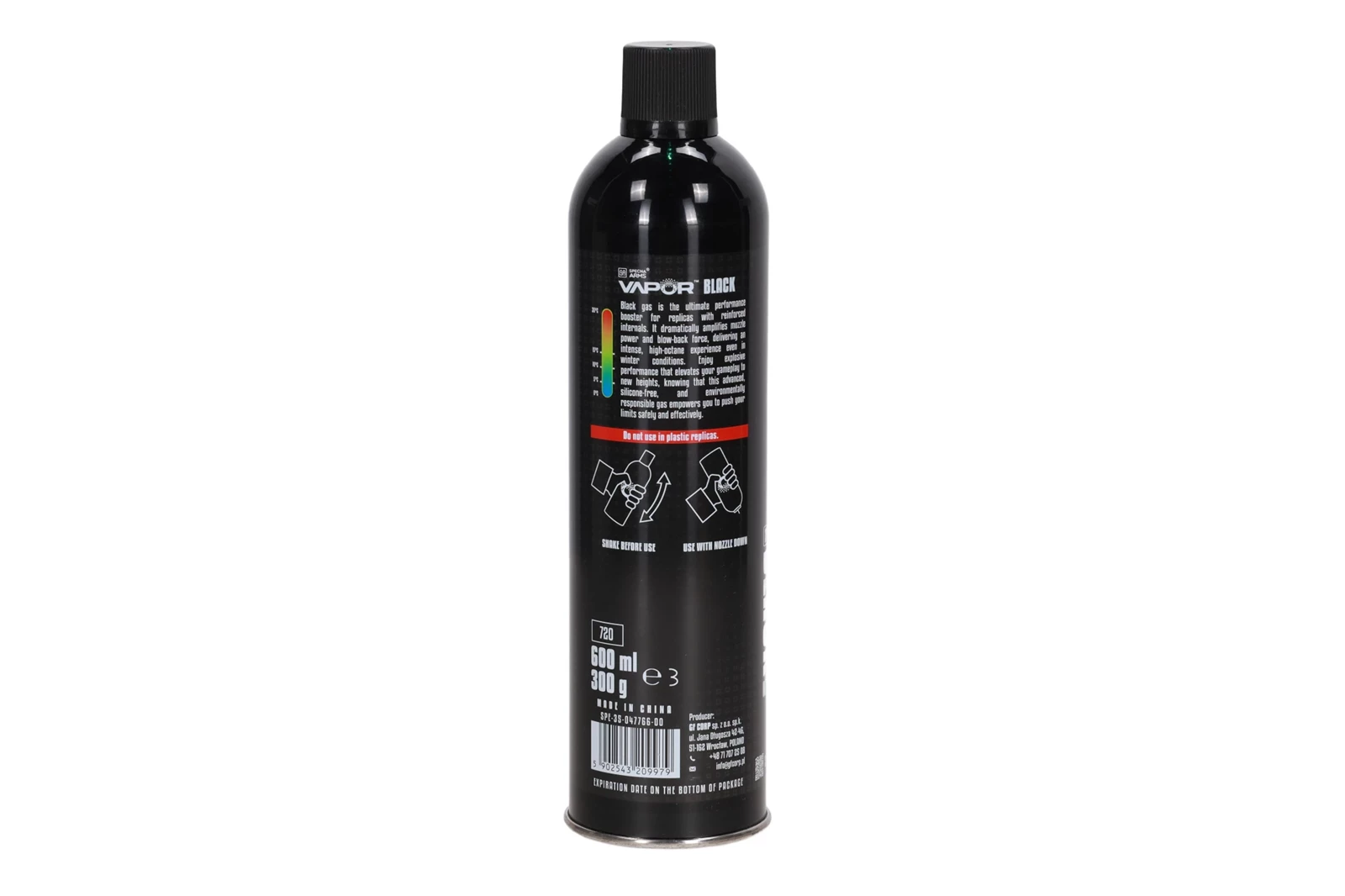 Green gas Vapor™ Black to najmocniejsza wersja w ofercie gazów Vapor™ — zapewnia najwyższe ciśnienie i maksymalną wydajność dla replik wyposażonych we wzmocnione części wewnętrzne, dostarczając intensywnych, dynamicznych wrażeń nawet w zimowych warunkach. Zapewnia wysoką moc, która wynosi rozgrywkę na nowy poziom, a jednocześnie — dzięki zaawansowanej formule pozbawionej silikonu i przyjaznej środowisku — pozwala bezpiecznie i skutecznie przesuwać granice możliwości Twojej repliki.