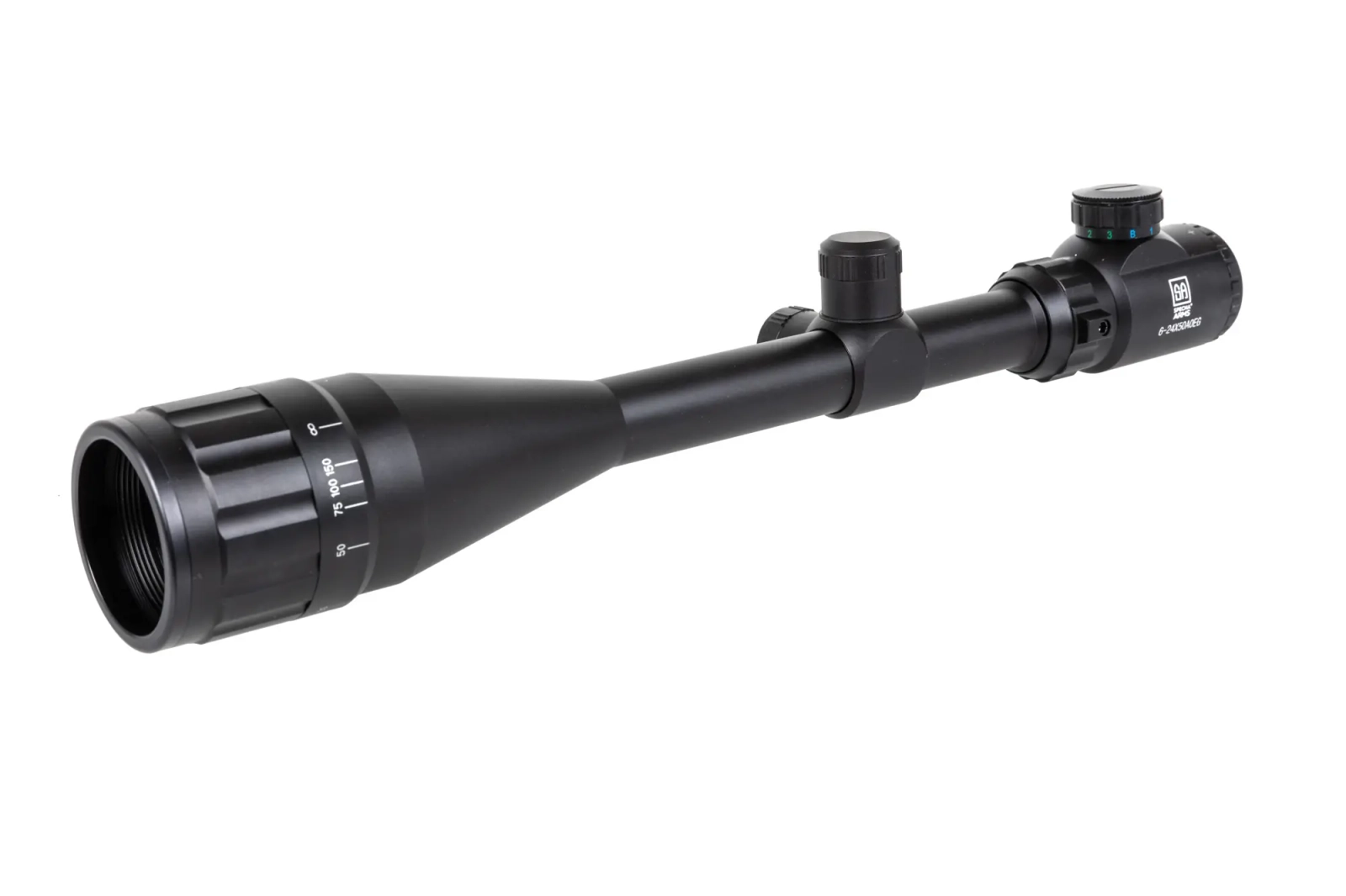 Luneta 6-24x50 AOEG przejrzysta optyka, która sprawdzi się w strzelaniu na większych dystansach i będzie świetnie współpracować z replikami karabinów snajperskich. Za rozsądną cenę otrzymujemy dobrej jakości model, który wykorzystamy z powodzeniem w airsofcie. Luneta jest wyposażona w krzyż celowniczy typu mil-dot oraz regulowane powiększenie w zakresie 6-24x Pozwala więc na dostosowanie mocy powiększenia do danego zadania i warunków. Dzięki podświetleniu krzyża na czerwono, niebiesko lub zielono (3 poziomy jasności), możemy ją wykorzysta do prowadzenia działań zarówno dziennych, jak i nocnych. Krzyż celowniczy płynnie wyregulujemy w pionie i poziomie, więc parametry strzału będą jeszcze bardziej precyzyjne. Gdy nie korzystamy z lunety, jej optyka jest chroniona przez komplet osłon na szkła, które producent dołączył do zestawu