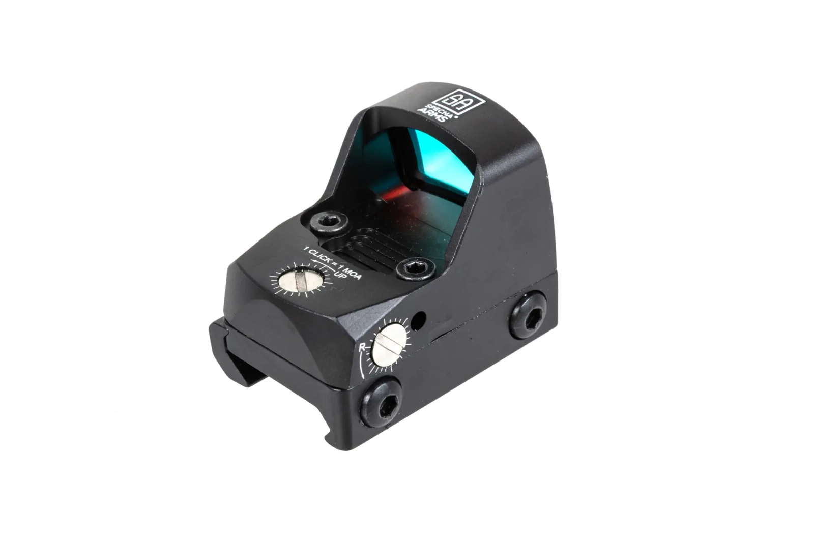 Model wykonany głównie z aluminium, posiada 7-stopniową skalę podświetlenia czerwonej kropki (zasilanie przy pomocy baterii CR2032). Jednocześnie prosta, ale skuteczna regulacja pion-poziom umożliwi dokładnie zerowanie produktu (1 klik = 1 MOA).