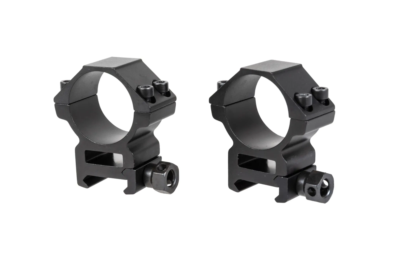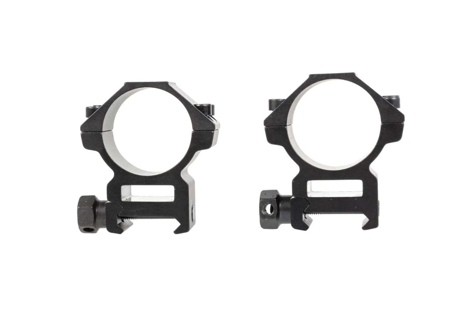 Wykonany w całości z metalu, dwuczęściowy montaż optyki. Składa się z dwóch pierścieni o średnicy 30mm skręcanych przy pomocy śrub imbusowych. Uniwersalny montaż pozwala na bezproblemowe mocowanie na każdej replice wyposażonej w standardową szynę Weaver. W zestawie znajduje się klucz imbusowy.