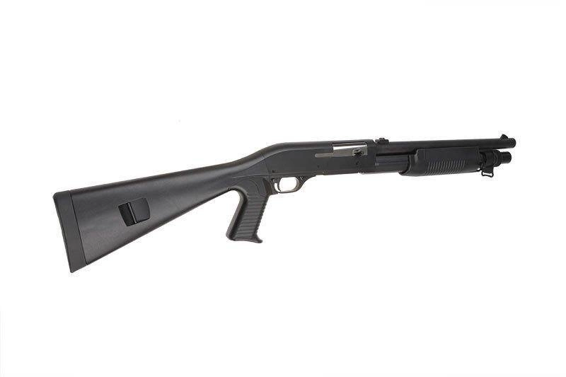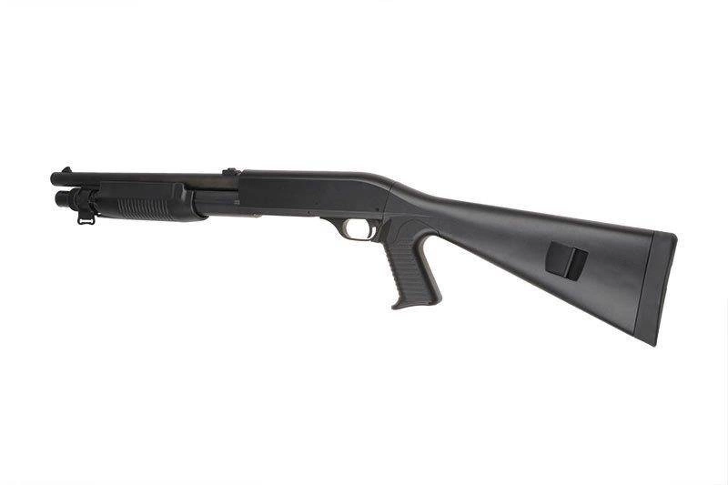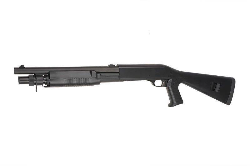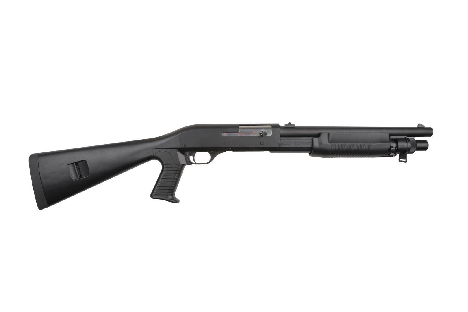 Rodzinę strzelb Cymy charakteryzują dokładnie te same cechy, co inne produkty tej znanej marki. To przede wszystkim solidna jakość wykonania i dobre osiągi w połączeniu z atrakcyjną ceną. CM360 to replika strzelby o napędzie sprężynowym, co najważniejsze - posiadająca aż 3 lufy wewnętrzne! Pozwala to na wystrzelenie 3 kulek jednocześnie za jednym pociągnięciem spustu, a dzięki temu uzyskanie zdecydowane przewagi na polu walki. Szczególnie podczas airsoftowych potyczek o charakterze CQB (choć nie tylko!). 6mm amunicję ładuje się do dołączonej atrapy shellsa o pojemności 30 kulek, którego następnie umieszczamy w komorze nabojowej, co nadaje użytkowaniu repliki dodatkowego powiewu realizmu.
