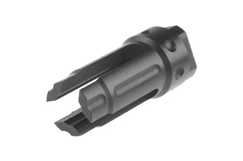 Tłumik płomienia wykonany został w całości z metalu a jego zwarta konstrukcja i jednobryłowy odlew zapewnią wytrzymałość i długi czas użytkowania. Model zaopatrzony w standardowy, lewoskrętny gwint o przekroju 14mm.