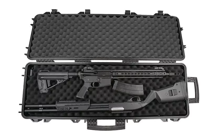 Wykonana z wytrzymałego tworzywa sztucznego walizka transportowa o wymiarach 1100×390×150mm pozwalająca na bezpieczne transportowanie broni o długości do 1000mm.