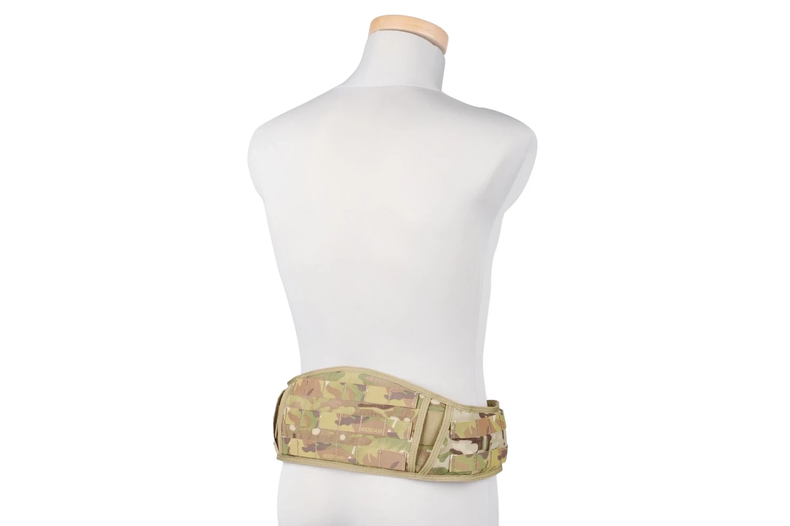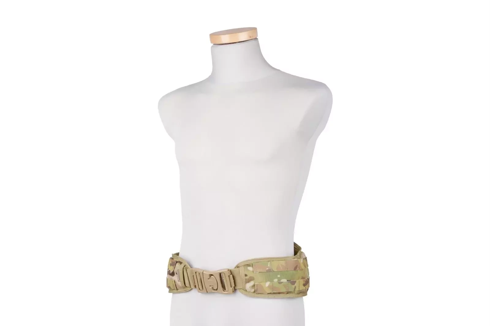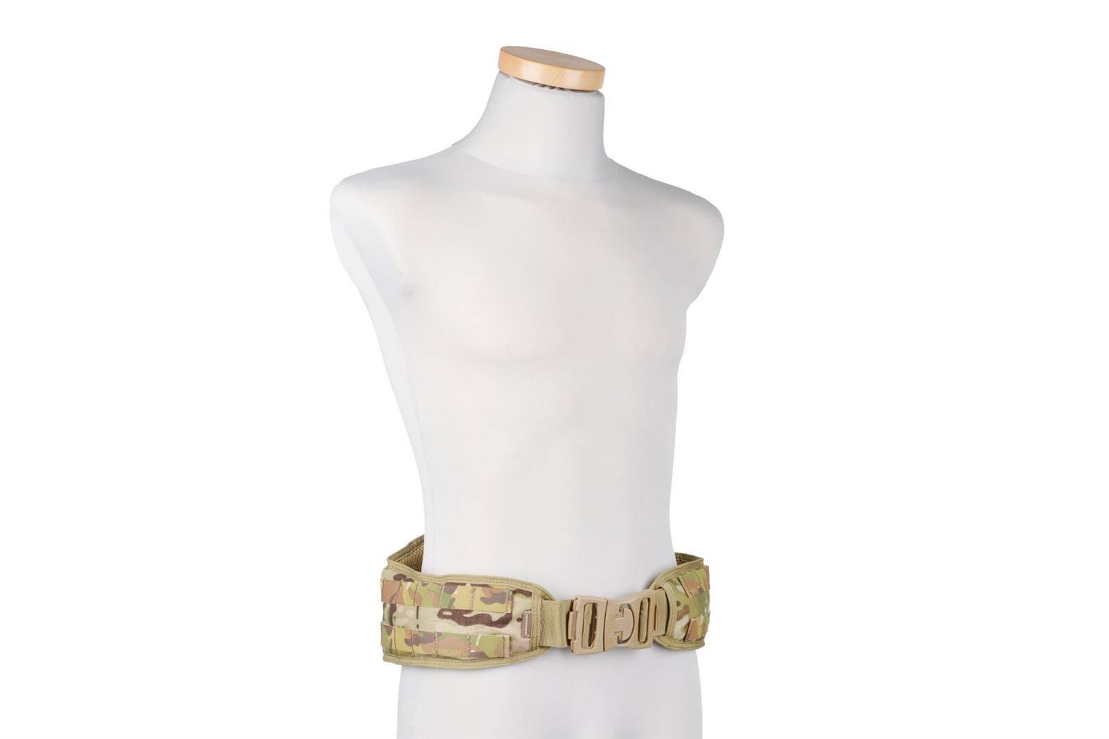 Taktyczny pas oporządzeniowy wyprodukowany przez firmę Emerson wykonany z cordury 500D w oryginalnym kamuflażu multicam, miękkiej pianki oraz tworzywa sztucznego. To mocna i wytrzymała konstrukcja, która wraz z popularnym systemem palsów MOLLE oraz komfortową pianką gwarantuje doskonałe połączenie.
