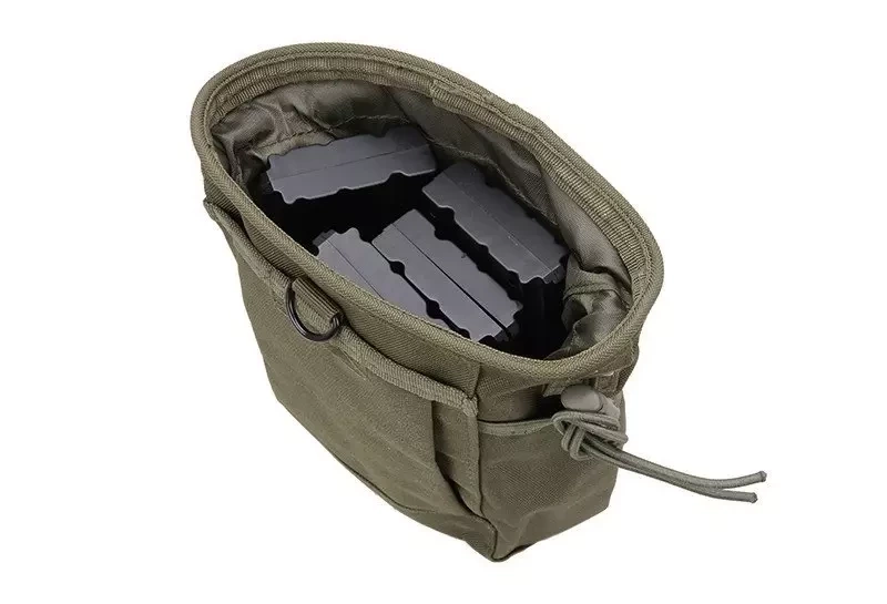 Mała torba zrzutowa na puste magazynki. Wykorzystanie tego typu torby znacznie przyspiesza wymianę magazynka w replice. Likwiduje konieczność wkładania pustych magazynków do ładownicy, dzięki czemu unikamy pomylenia magazynków pustych z pełnymi.