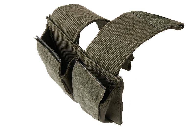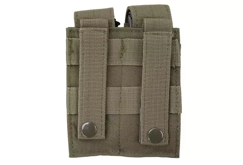 Podwójna ładownica kompatybilna z systemem MOLLE/PALS, mieszcząca 2 standardowe magazynki pistoletowe. Zamykana na klapę z rzepem.