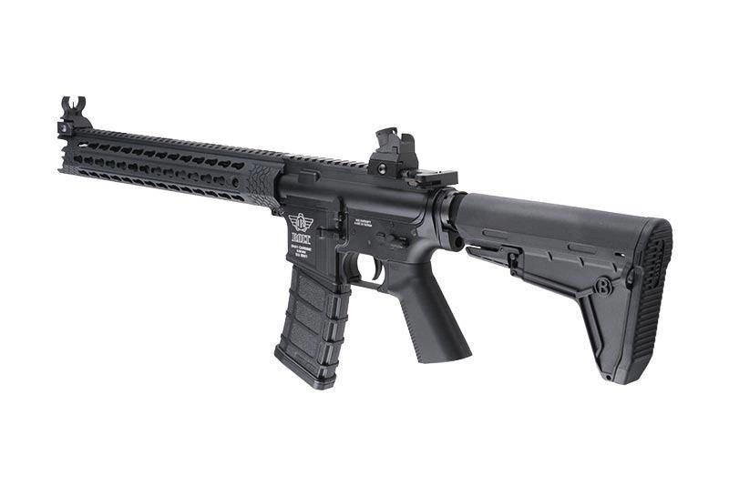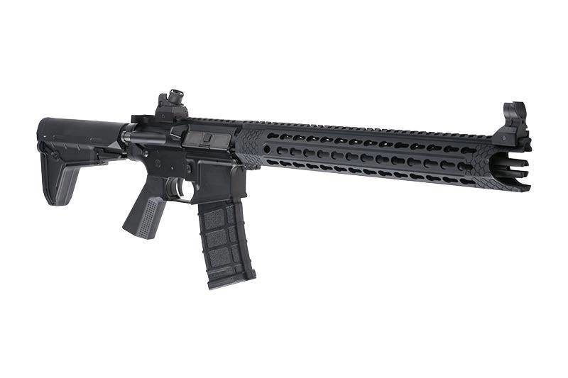 Replika zaopatrzona jest w wielopozycyjną, teleskopową kolbę BOE Delta Stock - z grubą, gumową stopką oraz otworami do mocowania zawieszenia taktycznego QD. Na grzbiecie korpusu znajduje się szyna RIS 22mm z zamontowanymi metalowymi celowniczymi przyrządami mechanicznymi. W chwycie przednim repliki zastosowano system montażu typu KEYMOD pozwalający na spersonalizowanie repliki pod własne wymagania i montaż dodatkowych akcesoriów jak chwyty czy latarki Taktyczne. Całość repliki wieńczy w pełni stalowy tłumik płomieni typu DEVGRU QDC. W skład zestawu wchodzi także polimerowy magazynek typu mid-cap mieszczący ok. 140 kulek.