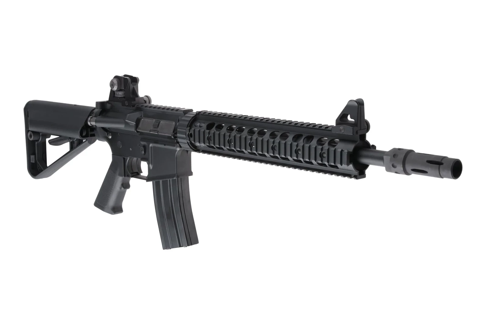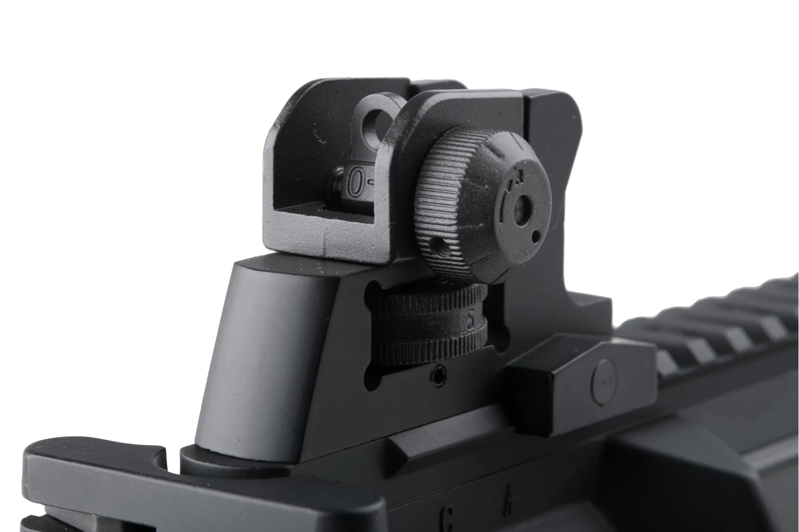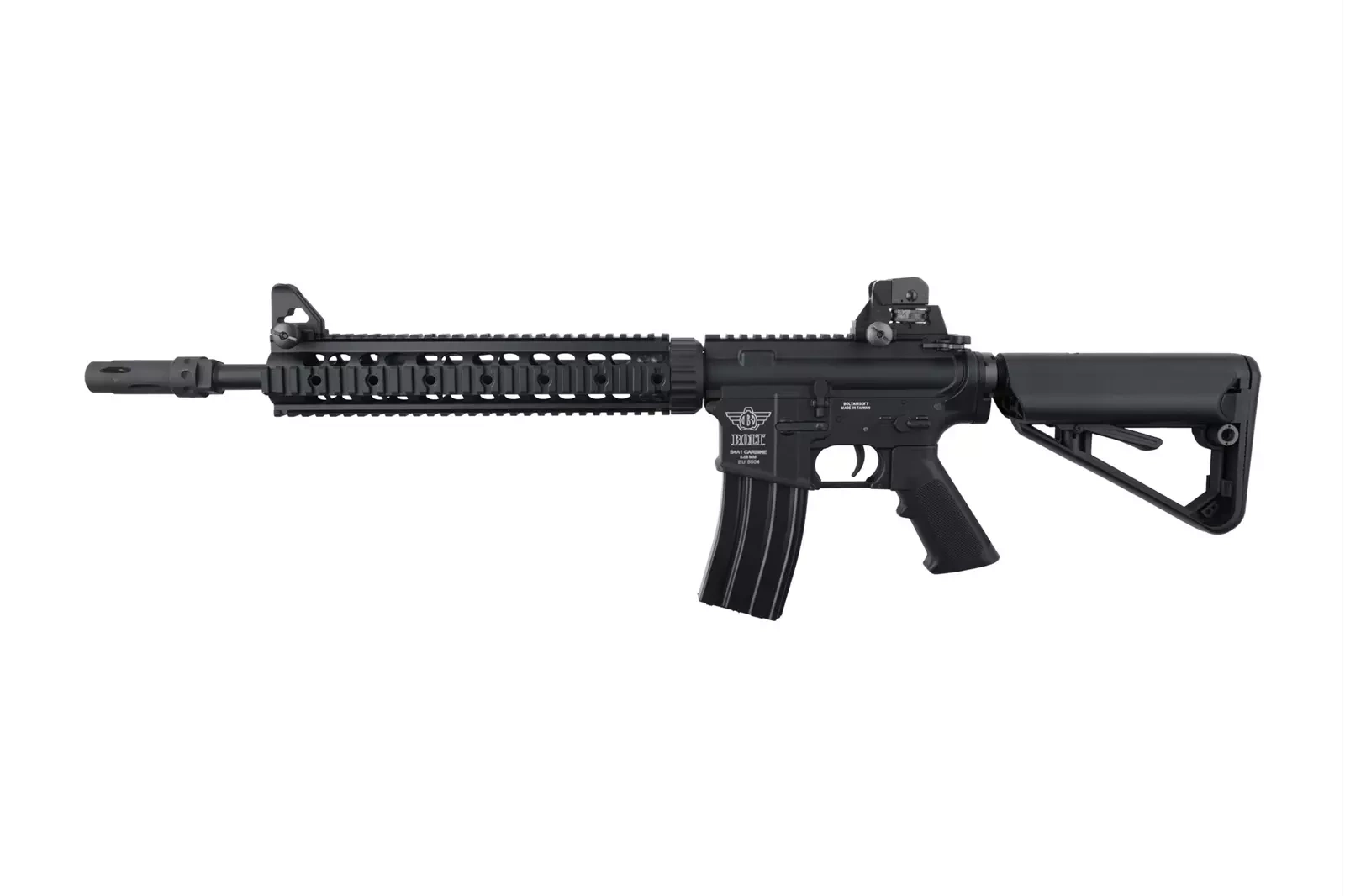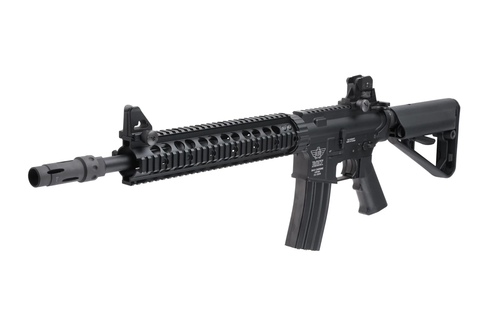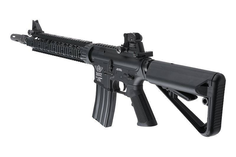 Replika zaopatrzona jest w wielopozycyjną, teleskopową kolbę BOLT TACTICAL STOCK (BTS) - z grubą, gumową stopką oraz otworami do mocowania zawieszenia taktycznego QD. Na grzbiecie korpusu znajduje się szyna RIS 22mm z zamontowanymi metalowymi celowniczymi przyrządami mechanicznymi. Chwyt przedni repliki posiada 4 szyny RIS 22mm pozwalające na montaż rożnego typu dodatków takich jak: latarki taktyczne, kolimatory czy laserowe wskaźniki celu. Lufa zakończona jest w pełni stalowym tłumikiem płomieni BOLT QDC. W skład zestawu wchodzi także stalowy magazynek typu hi-cap o pojemności ok. 300 kulek.