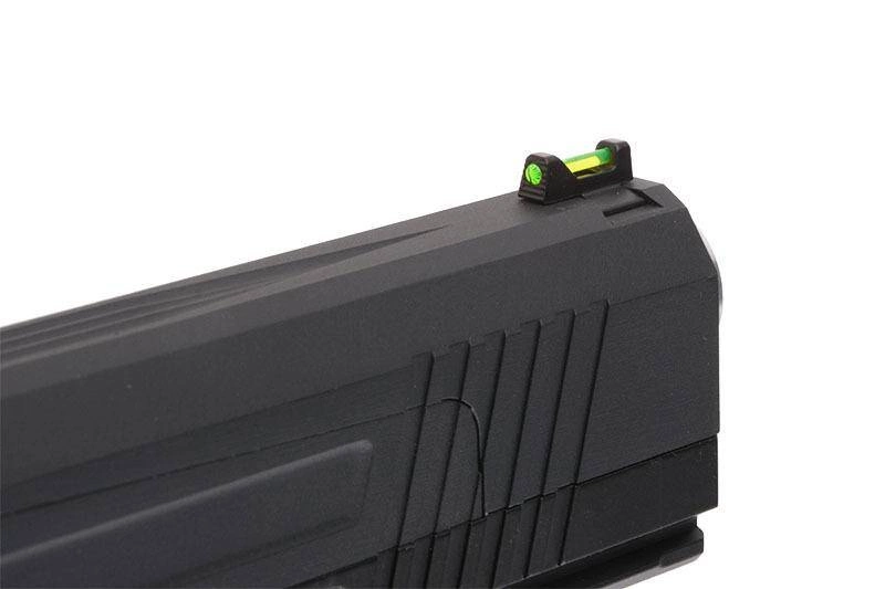 Pistolet posiada mocny system blow-back, który imituje wrażenie strzelania z prawdziwej broni. Podobnie jak w palnym oryginale, po wystrzeleniu ostatniej kulki zamek pistoletu blokuje się w tylnym położeniu. Pod lufą umieszczono szynę RIS / Picatinny 22mm, dzięki której doposażymy replikę w akcesoria dodatkowe takie jak oświetlenie taktyczne, czy celowniki laserowe.