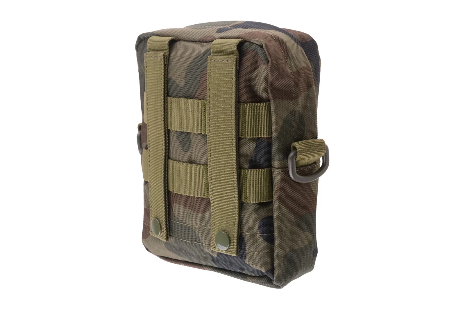 Zaopatrzona w montaż na taśmy molle kieszeń została podgumowana z wewnątrz co przekłada się na utrzymanie wysokiej granicy wodoodporności. Na przedniej ścianie znajduje się kieszonka zapinana na zamek błyskawiczny, dwa poziomy palsów molle oraz mały panel rzepowy do przyczepienia np. naszywki. Po bokach ładownicy umieszczono dwa d-ringi które umożliwiają stworzenie z ładownicy małej torby.