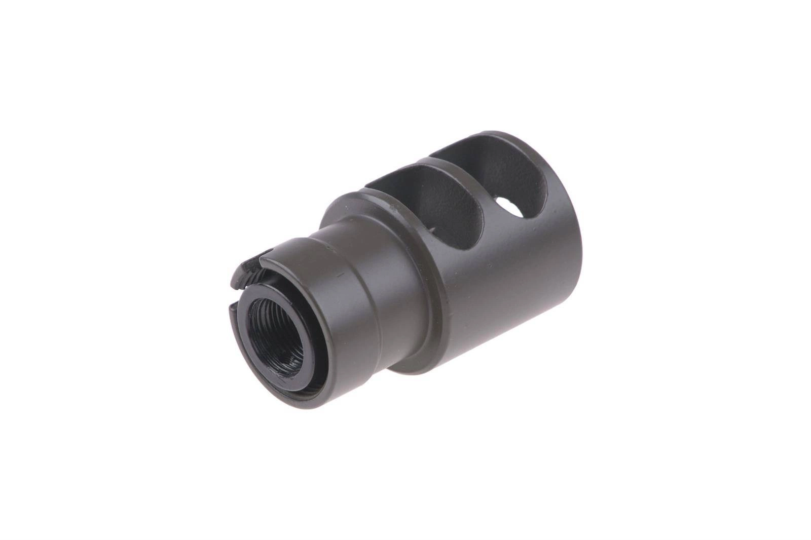 Wykonany ze stali tłumik płomieni typu DTK2 przeznaczony do montażu w replikach typu AK które wyposażone są w gwint 14mm CCW.