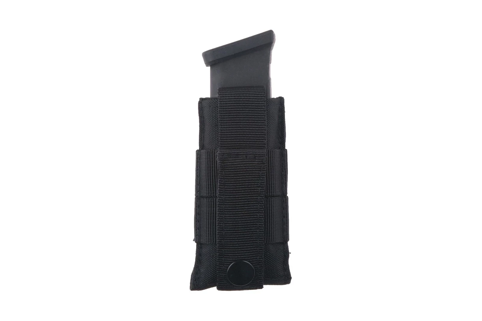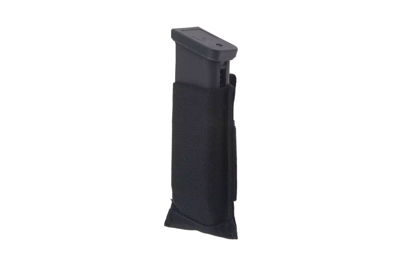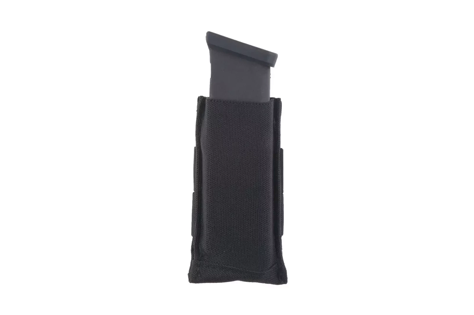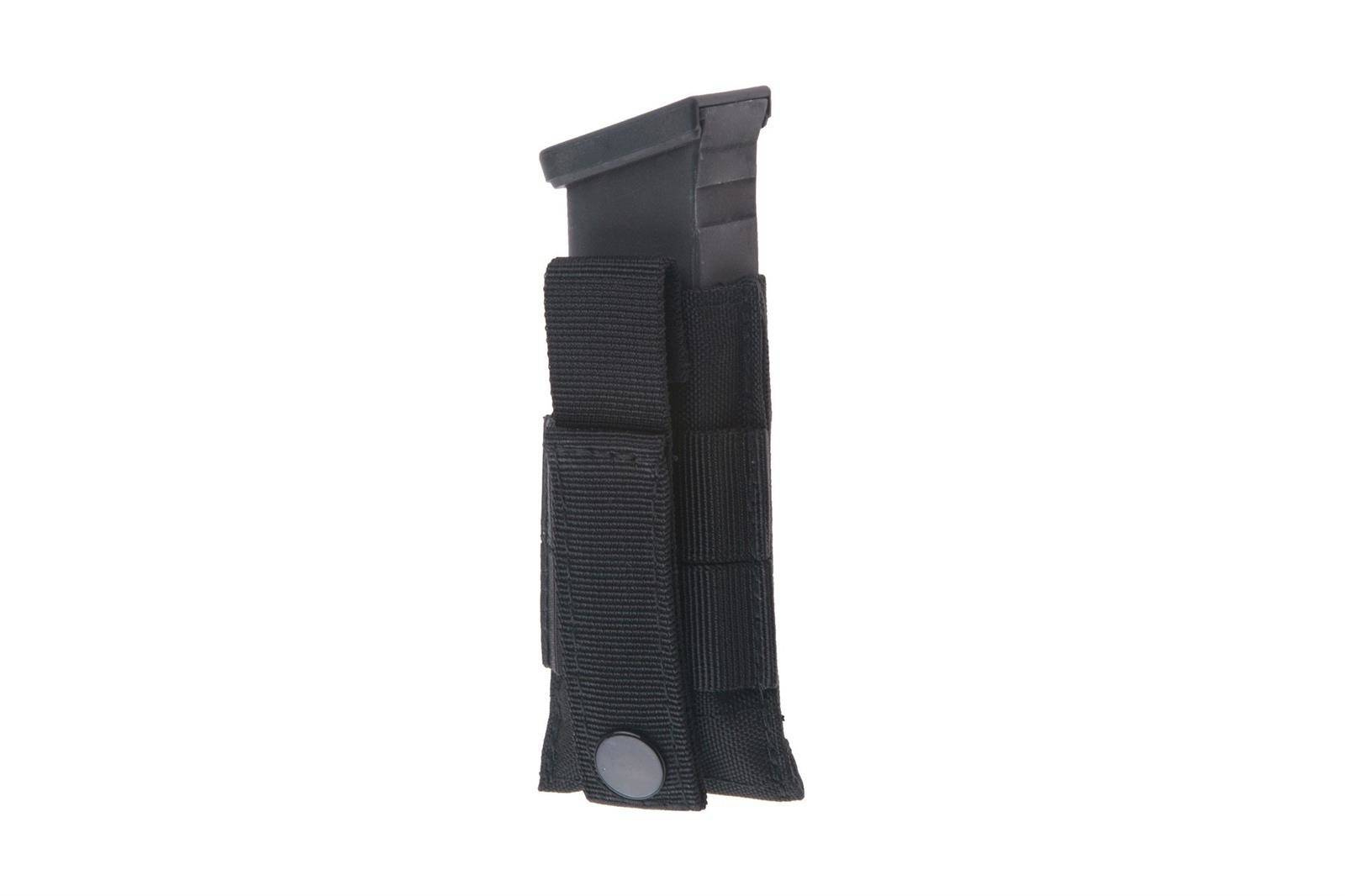 Wykonana z wytrzymałego nylonu ładownica typu speed na 1 magazynek pistoletowy. Wykonana w części z elastycznego materiału pozwala na błyskawiczne dobycie magazynka a także znacznie ogranicza ciężar i miejsce na oporządzeniu. Ładownica mocowana jest na oporządzeniu dzięki systemowi MOLLE.