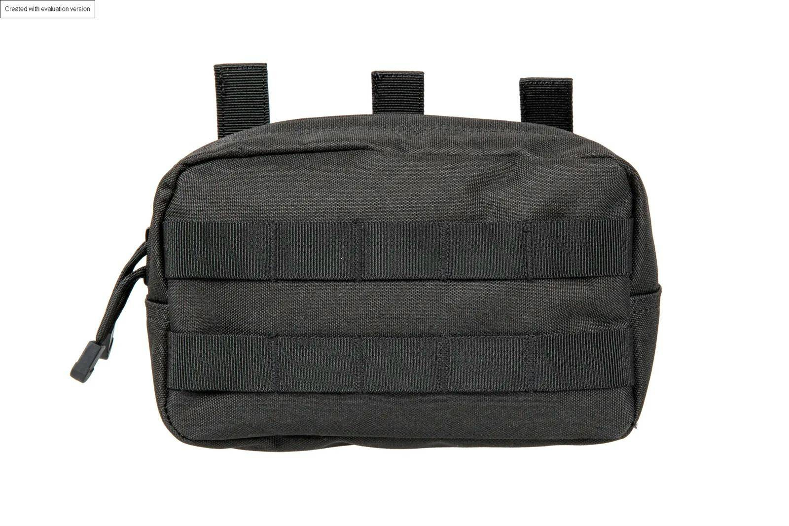 Wielofunkcyjna kieszeń typu cargo z montażem w systemie molle. Kieszeń zaopatrzona jest w otwór drenażowy pozwalający odprowadzić ewentualnie nagromadzoną wodę oraz jest zamykana za pomocą dwubiegowego zamka błyskawicznego.