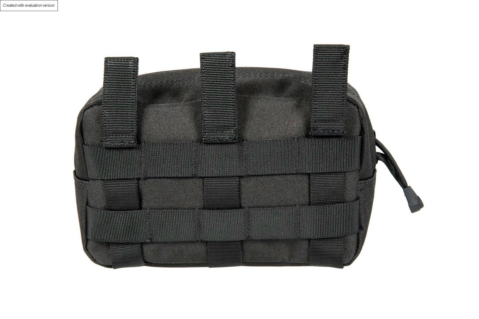 Zaopatrzona w montaż na taśmy molle kieszeń została podgumowana z wewnątrz co przekłada się na utrzymanie wysokiej granicy wodoodporności. Cała przednia ściana kieszeni została pokryta taśmami systemu modułowego MOLLE, co pozwala na zamocowanie dodatkowego wyposażenia.