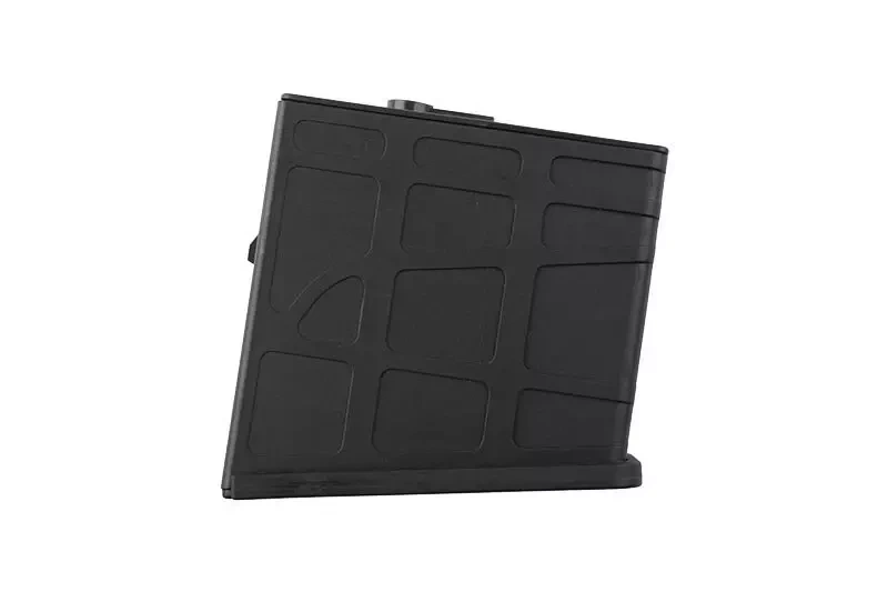 Wykonany z czarnego tworzywa sztucznego magazynek typu Hi-Cap do repliki SW-016 firmy Snow Wolf. Nakręcany za pomocą zębatki znajdującej się w dolnej części magazynka.