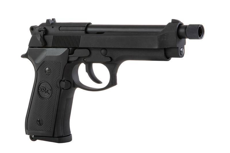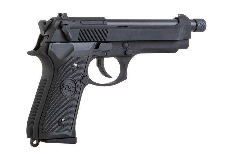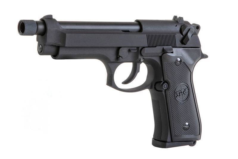 Replika pistoletu SR92 firmy SRC wykonana została prawie całości z metalu. Z metalu wykonano przede wszystkim zamek repliki. Metalowy jest także szkielet czy manipulatory repliki. Tak jak w palnym odpowiedniku z wytrzymałego polimeru wykonano okładziny chwyt pistoletowego z naniesionymi oznaczeniami producenta.