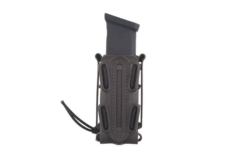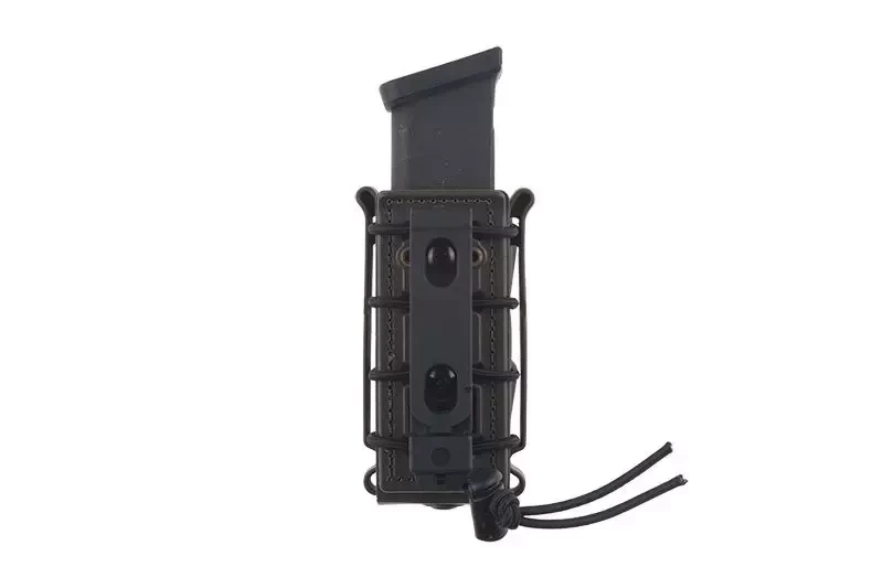 Wykonana ze specjalnego, wytrzymałego ale i elastycznego tworzywa sztucznego ładownica typu fast mieszcząca jeden magazynek pistoletowy/dwurzędowy. Ładownica wyposażona jest w specjalną elastyczną linkę do regulacji "rozwarcia" ładownicy która lepiej dopasowuje ładownicę do zawartości i nie pozwala magazynkom wypaść. Ładownicę zamontować można na pasach o maksymalnej szerokości 45mm i na oporządzeniu zgodnym z systemem MOLLE.