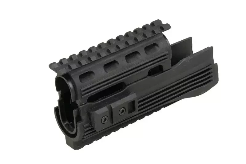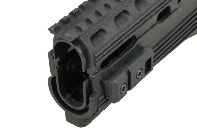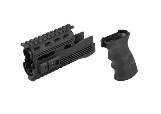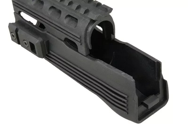 Wykonana z tworzywa konwersja pozwala na wyposażenie klasycznej repliki AK w zestaw szyn RIS oraz wygodny, profilowany chwyt pistoletowy. Łoże wraz z nakładką na rurę gazową posiada 4 szyny RIS. Dwie krótkie o długości 45mm oraz długie 120 i 130mm.