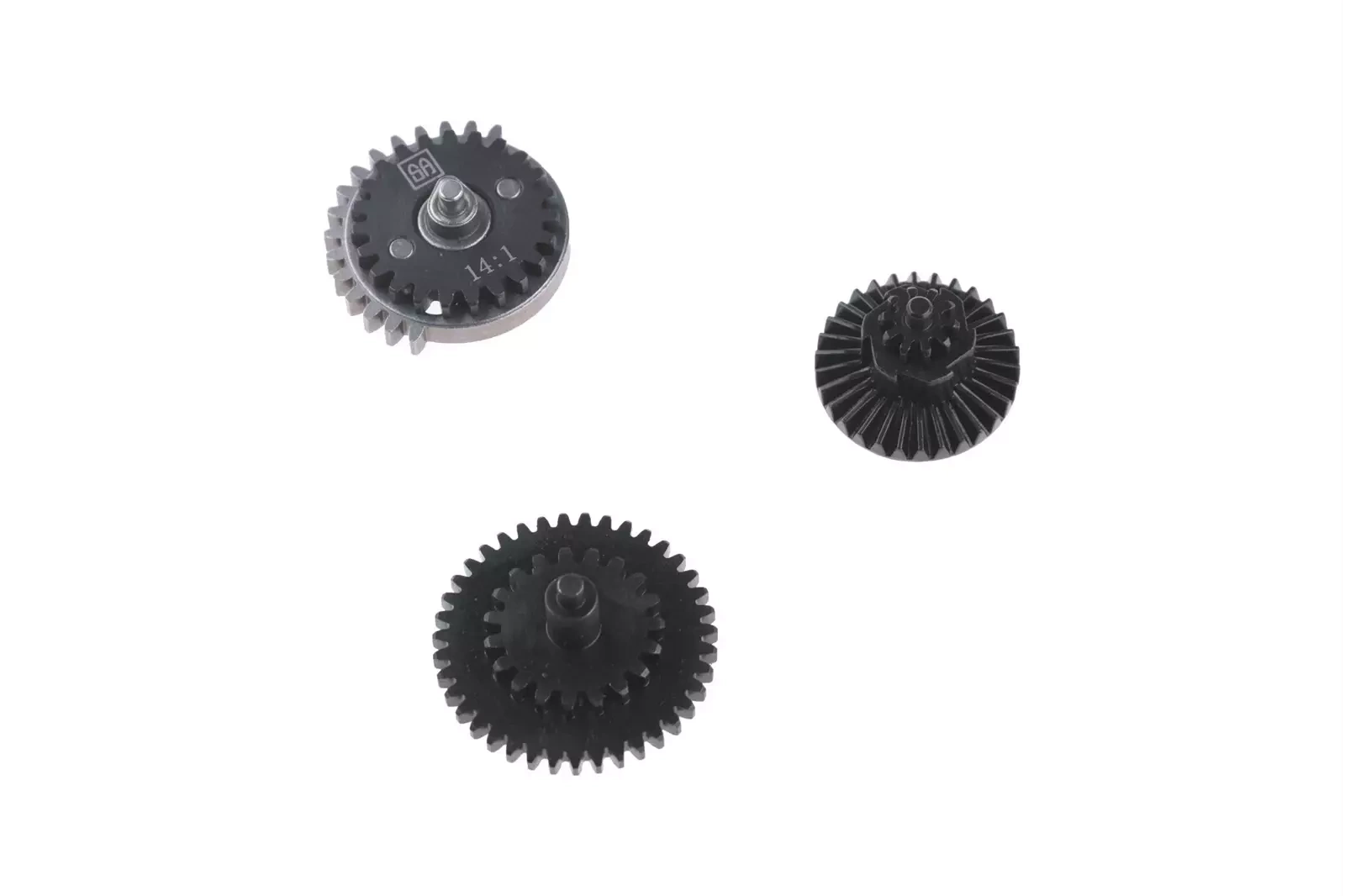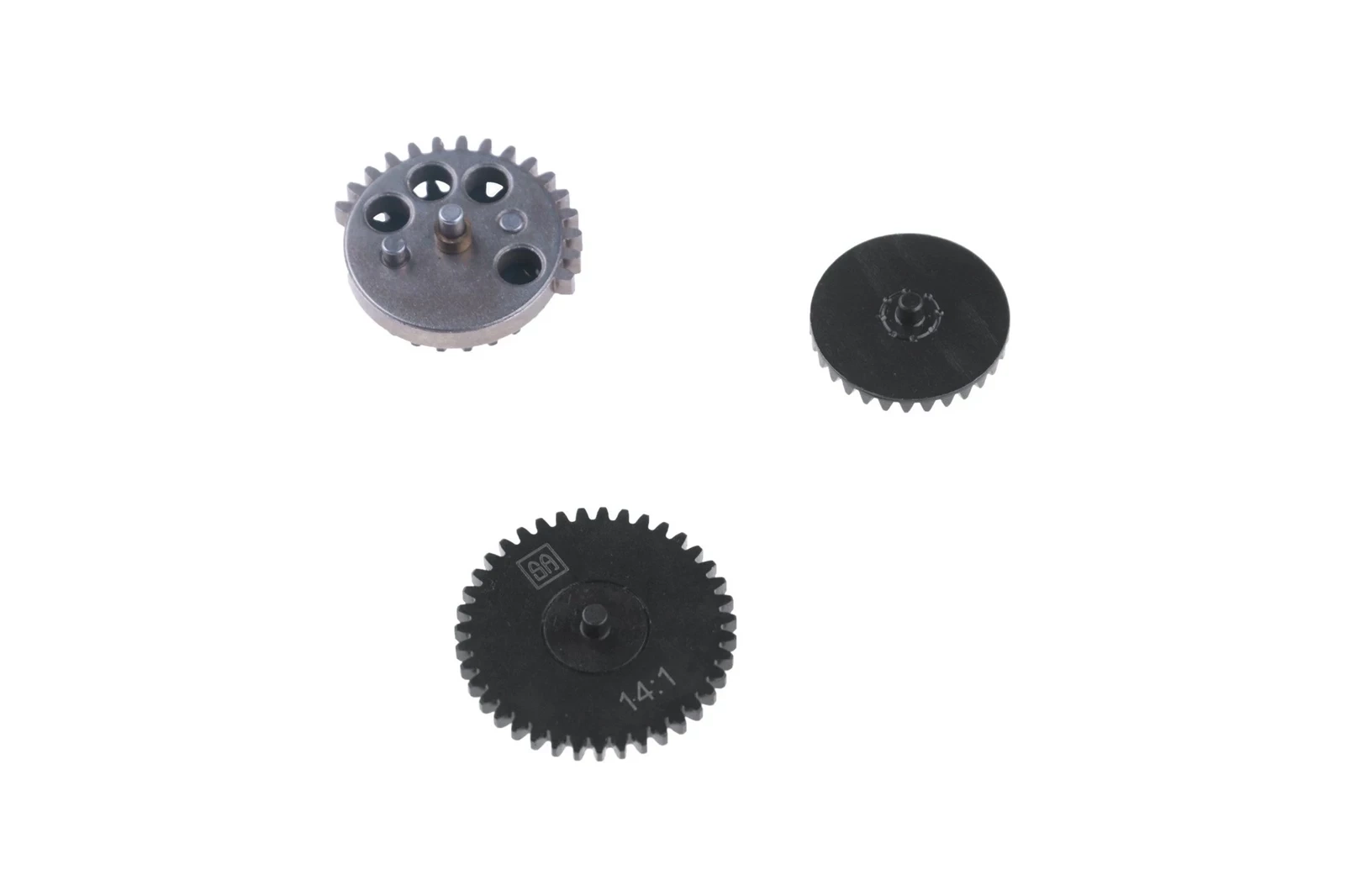 Komplet kół zębatych wykonany ze stali przy użyciu precyzyjnych maszyn CNC. Idealne do tuningu replik airsoftowych.